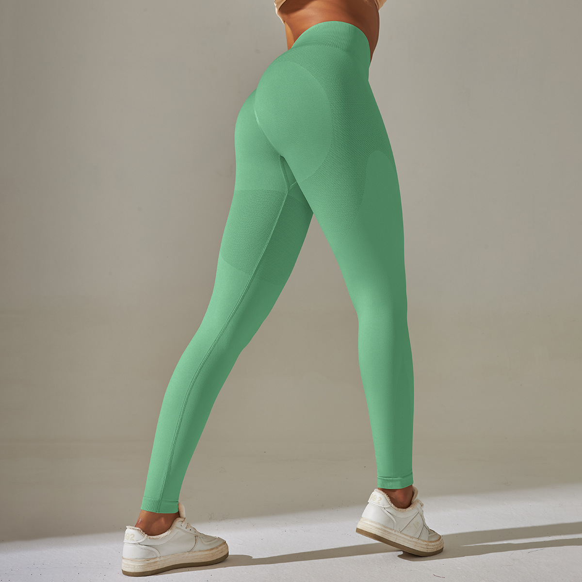 Seamless Peach Five-Piece Solid Color High-Waist Tight Jacquard Back Bra Vest Yoga Pants Set