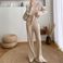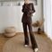 Tired of sacrificing comfort for style? This sweater-pants set blends the coziness of loungewear with runway-worthy details. The slit-knit sweater drapes elegantly while the wide-leg pants create a flattering silhouette – no more stiff office separates or shapeless sweatpants.