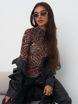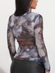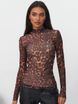 Women's sexy spicy girl style mesh see through printed T-shirt as a base, Gareth fabric long sleeved high neck