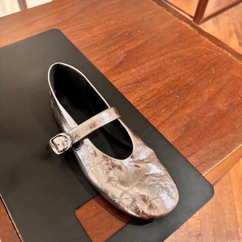 Sheepskin Version ~ Soft Sole Ballet Style Silver Mary Jane For Women Spring One-Strap Flat Commuter Shallow Mouth