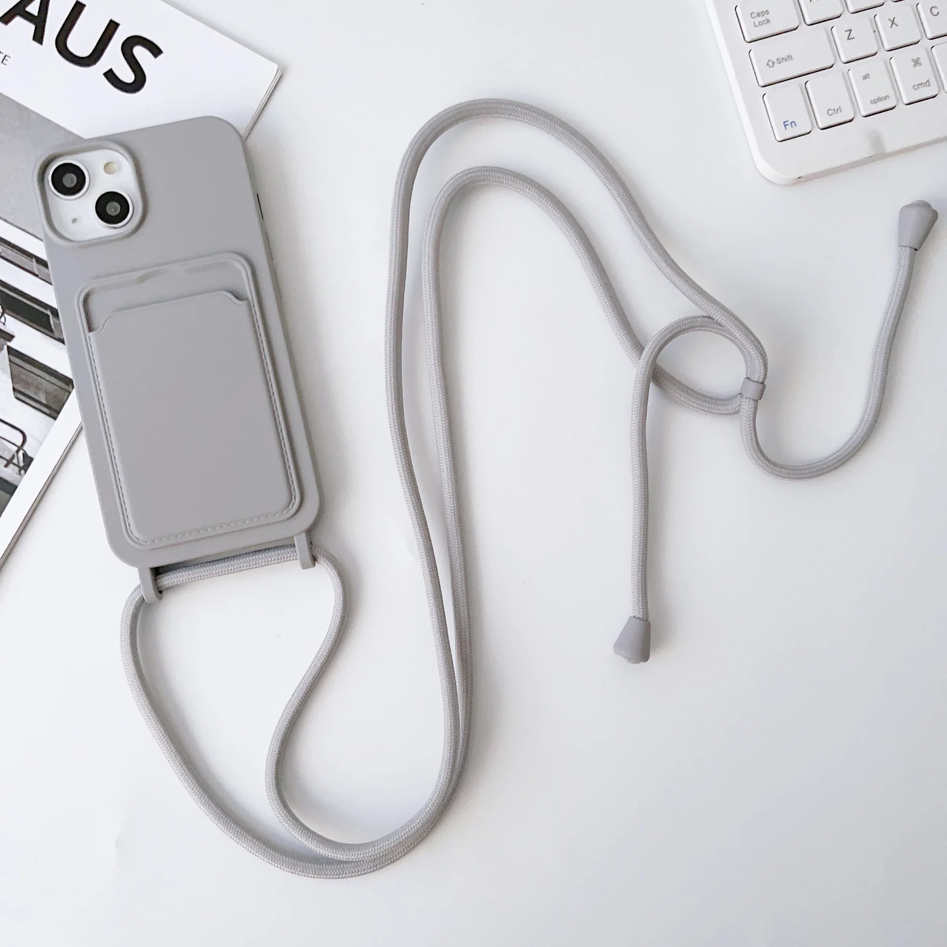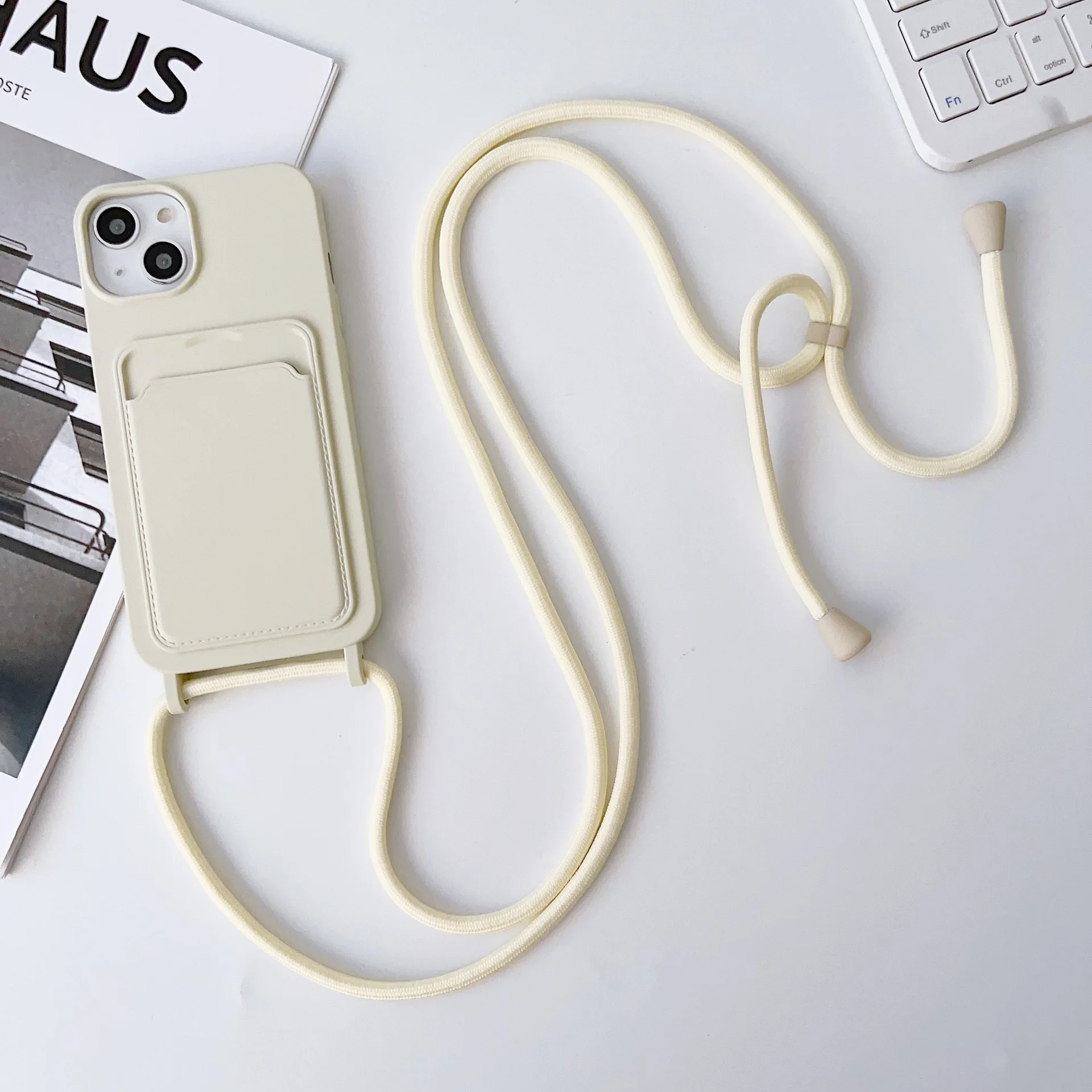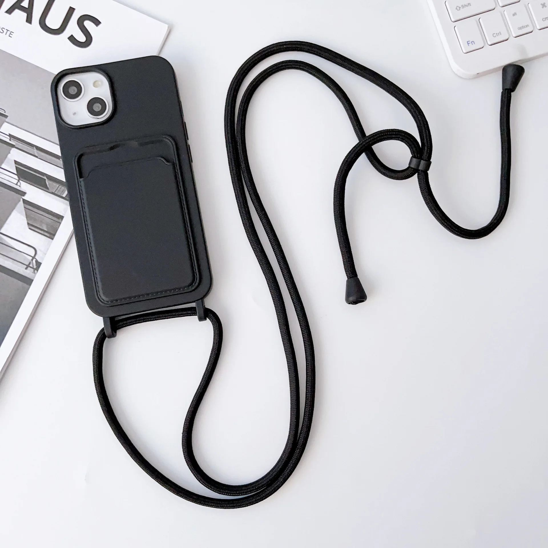 17 16 15 14 Pro 11 12 13 Pro Max with Lanyard Soft Case Shockproof Credit Card Slot Portable Computer Phone Case