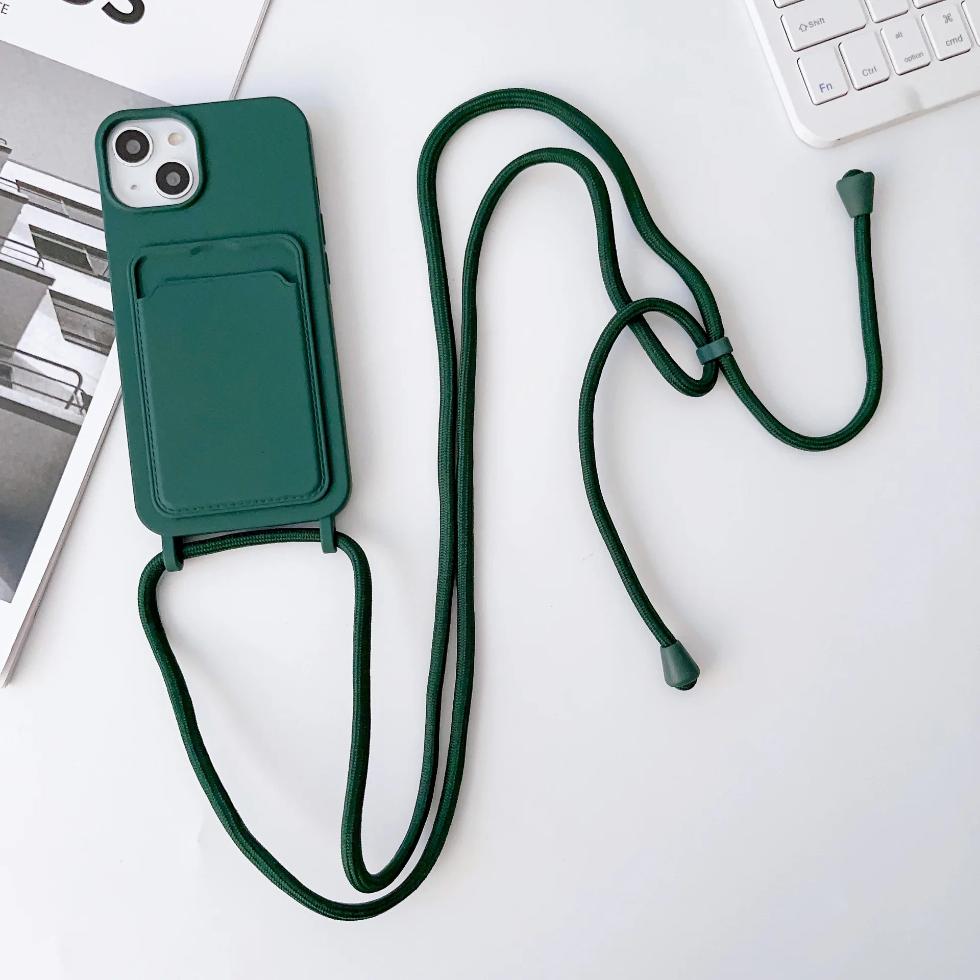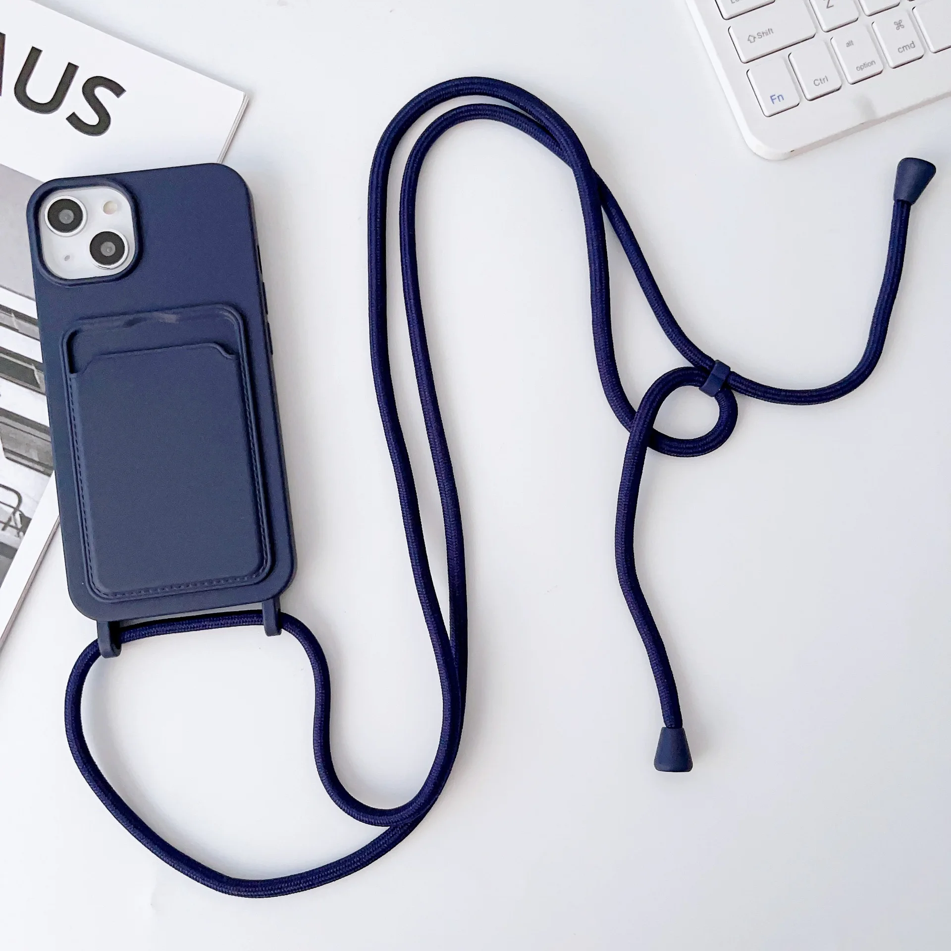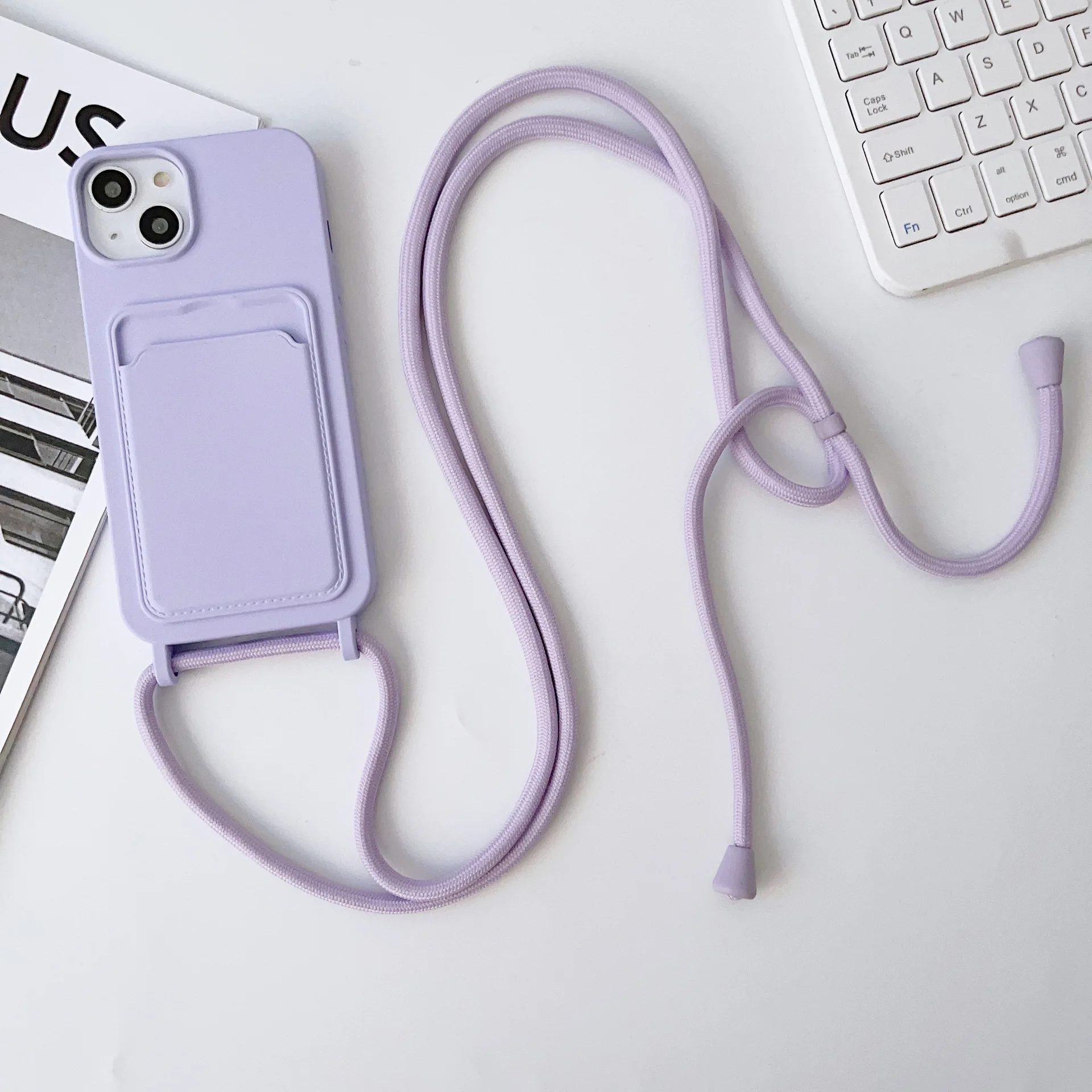 17 16 15 14 Pro 11 12 13 Pro Max with Lanyard Soft Case Shockproof Credit Card Slot Portable Computer Phone Case