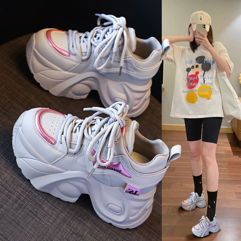 Show off Little Dad for Women' Interior Height Increae 2024 Spring New Veratile Color blocked Thick oled Caual