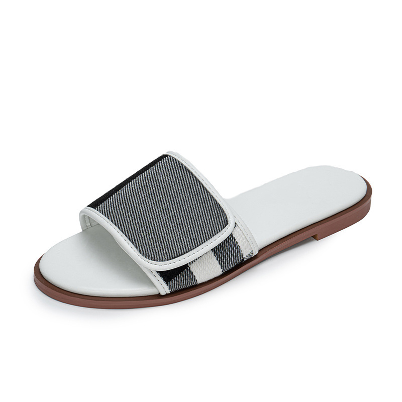 slides slippers cross border B home Velcro flat slippers women's one line outer wear beach casual sandals