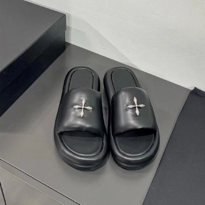 SM Cross Flower Classic Women's Leather Outerwear Strap 2024 Summer New Women's Slippers Thick Bottom Cross