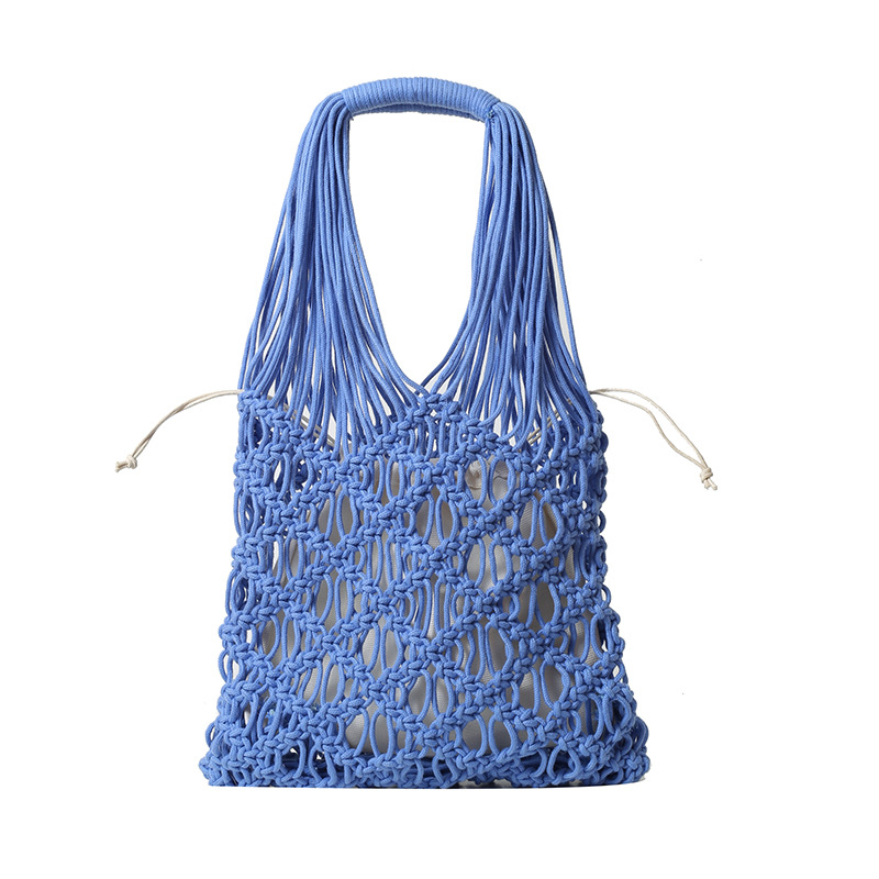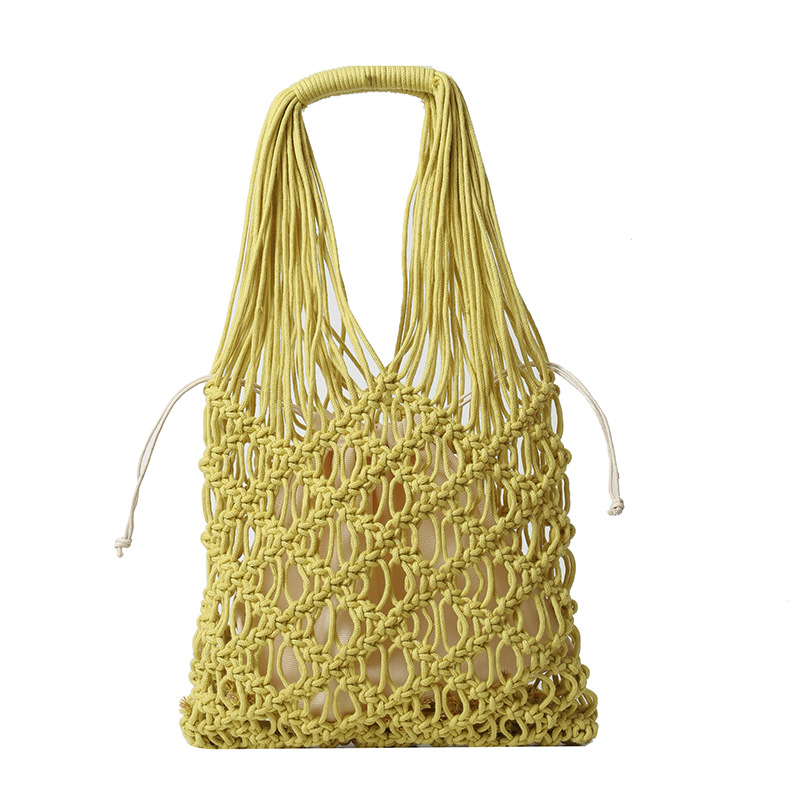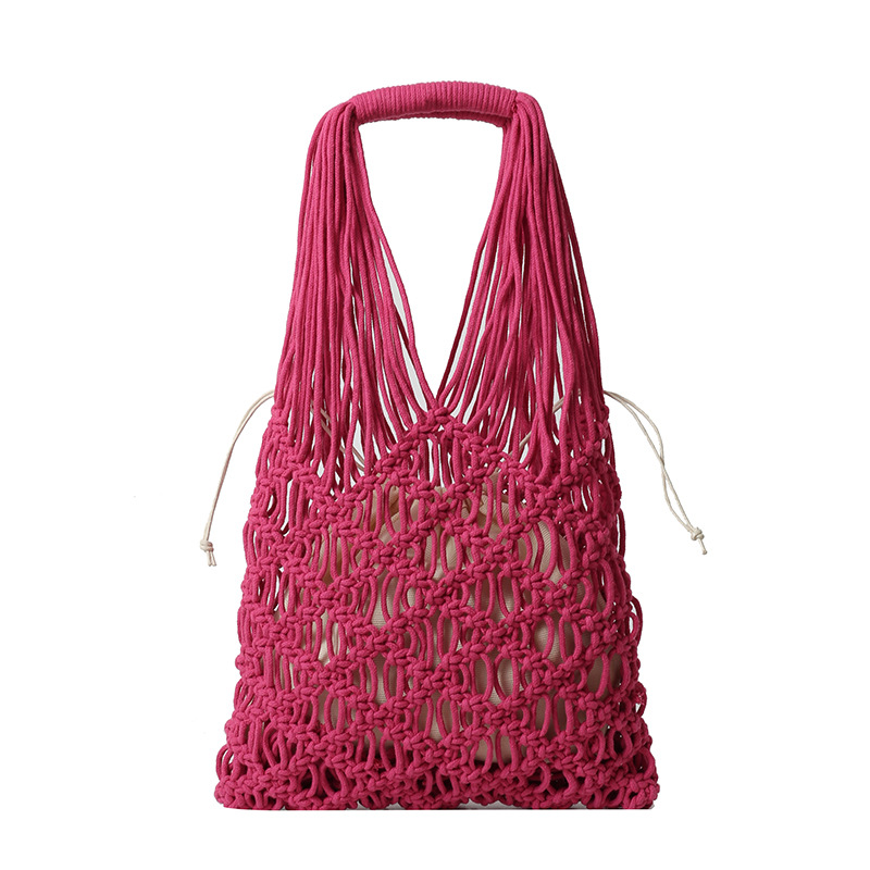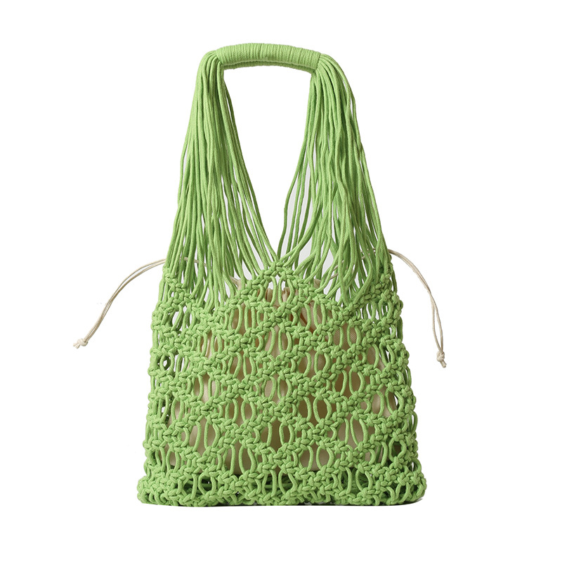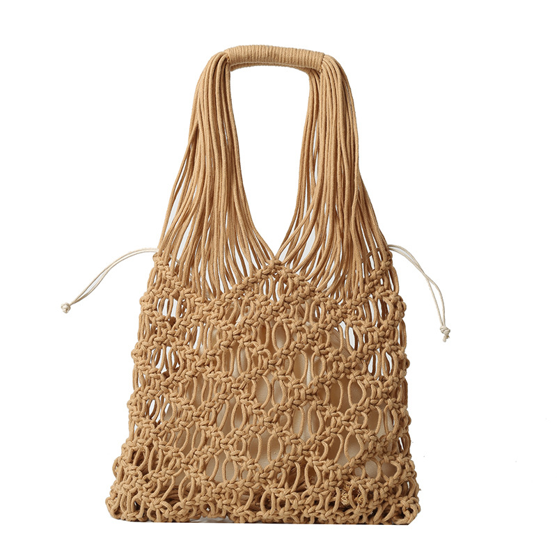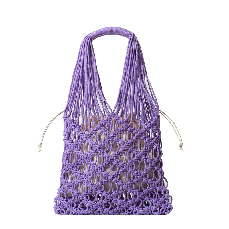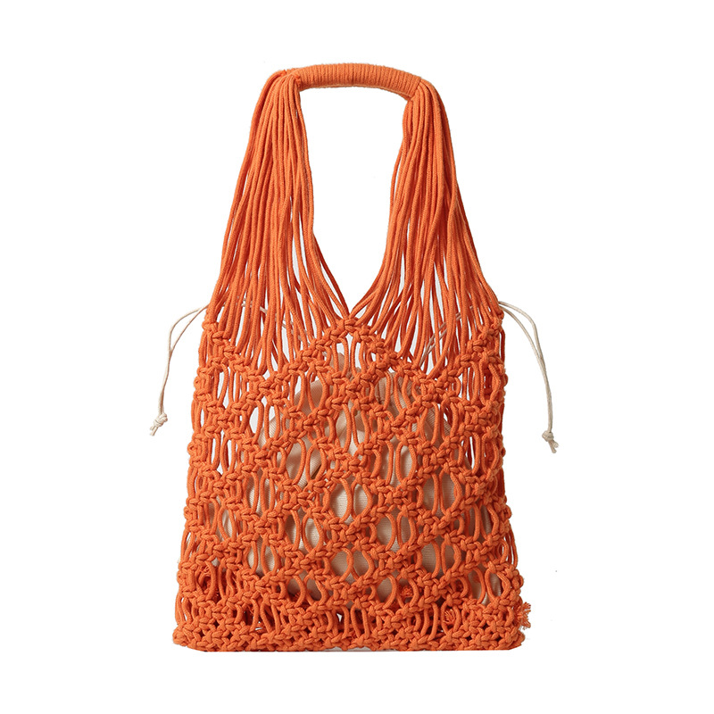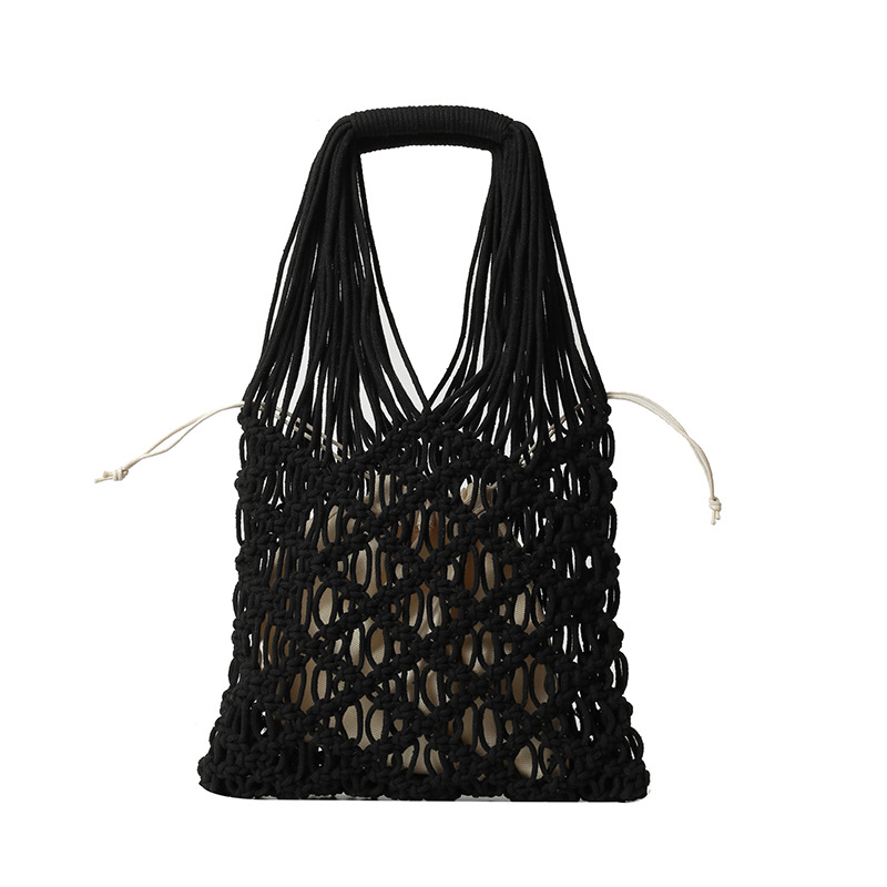 Small and high-end textured cotton rope woven hollow underarm handbag for women, versatile, large capacity beach bag, fishing net bag