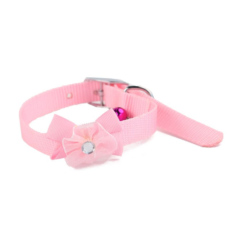 Solid Color Dog Collar Bowknot Diamond Flower Decoration Adjustable Size Nylon Pet Single Neck Strap