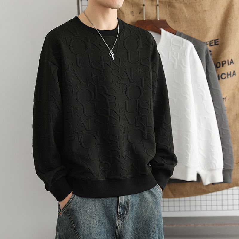 Spring and Autumn New Men's Sweatshirt T-Shirt Long Sleeve Crew Neck Hoodless Top Solid Color Loose Fit Versatile Base Shirt