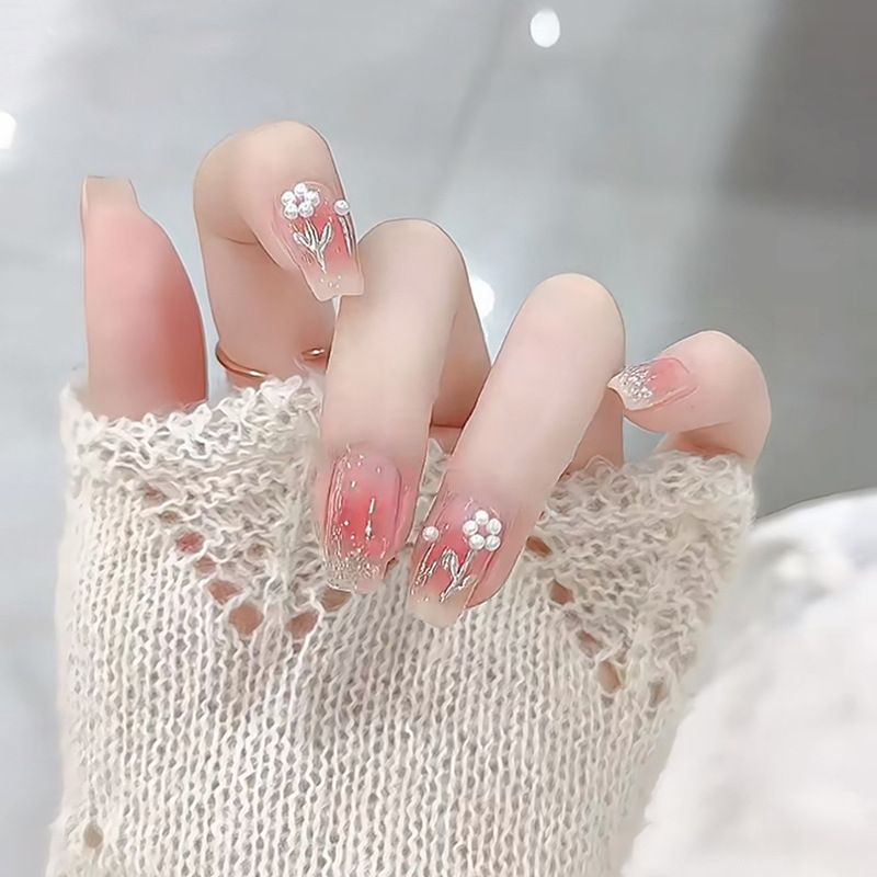 Spring Little Fresh Wearing Nail Enhancement Finished Patch powder blusher pearl flower wearable nail patch
