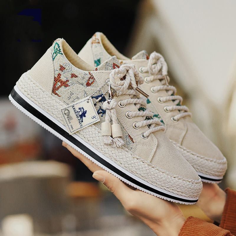 Spring Old Beijing Cloth Shoes Canvas Shoes Men's Breathable Trendy Corduroy Flat Shoes Men's Casual Lightweight Thin Style