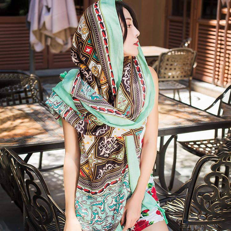 Spring Summer New Ethnic Style Cotton Linen Scarf For Women Desert Travel Sun Protection Shawl Thin Oversized Versatile