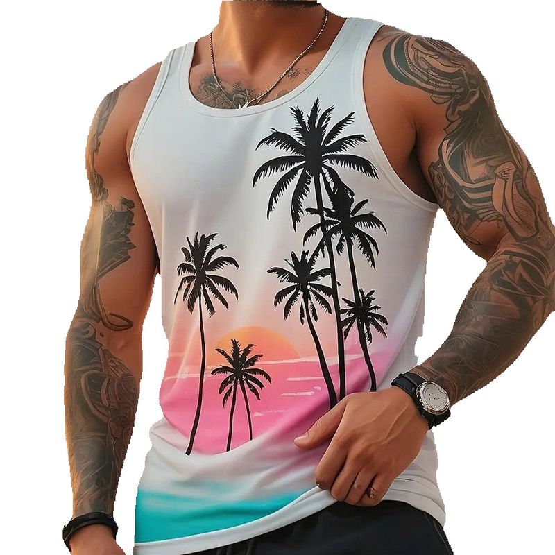 Summer Casual Loose Trendy Simple Coconut Tree Print Vest 3D Printed Moisture-Wicking Gift For Young Men