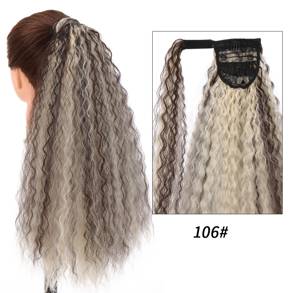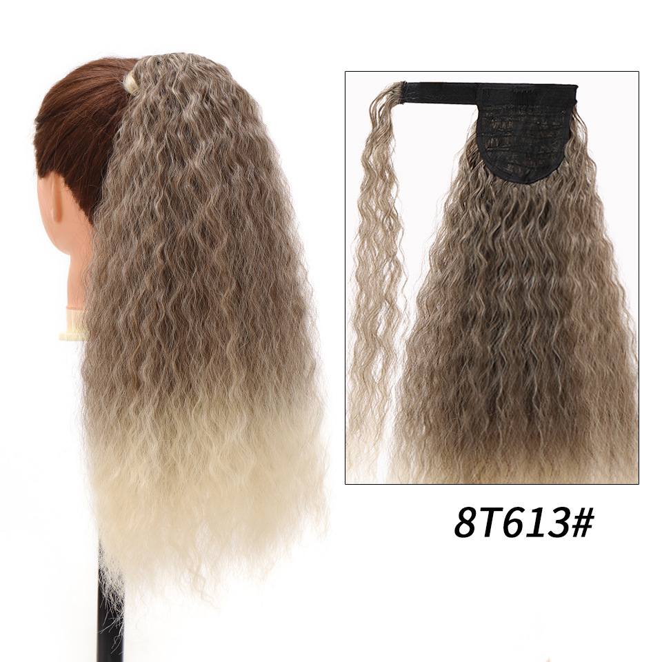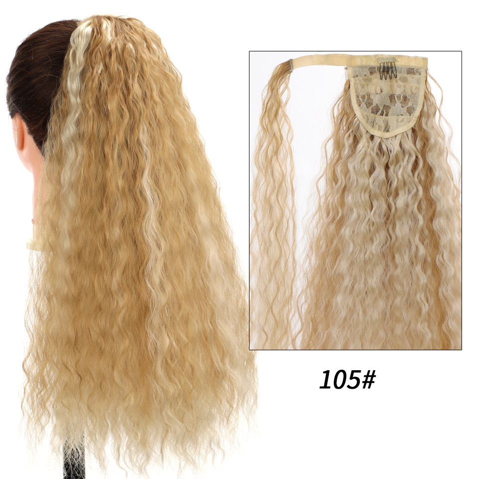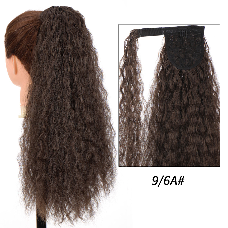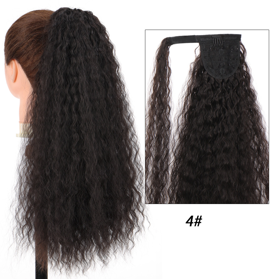 Synthetic wig Velcro Strap Wrap Corn Hot Small Ripple Long Curly Hair with High ponytail