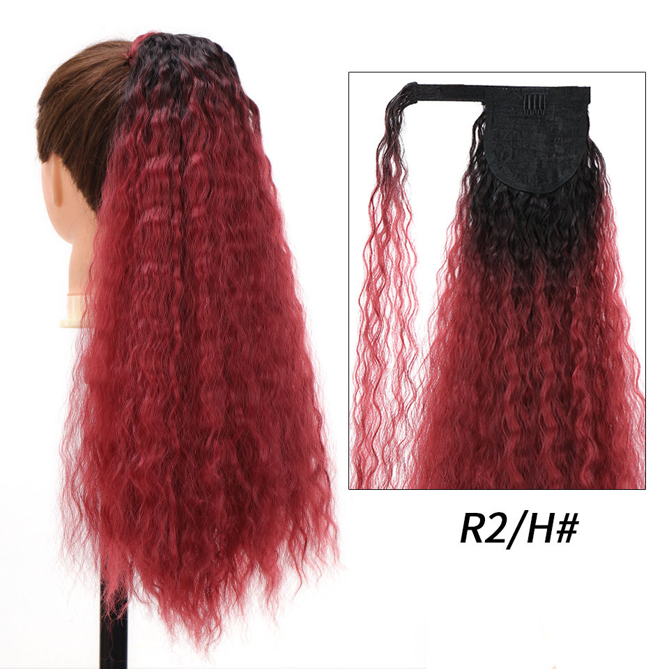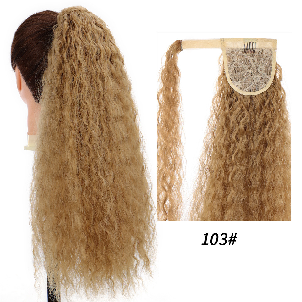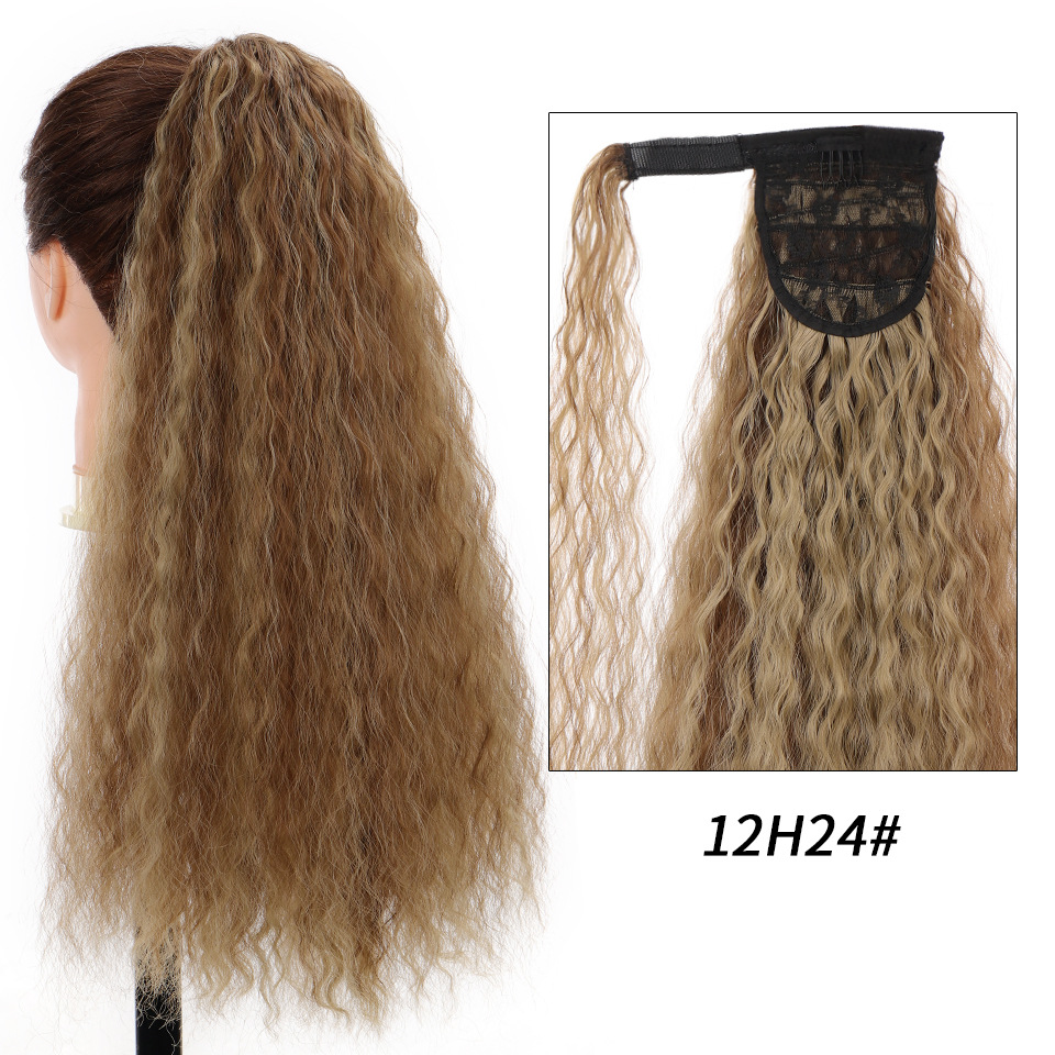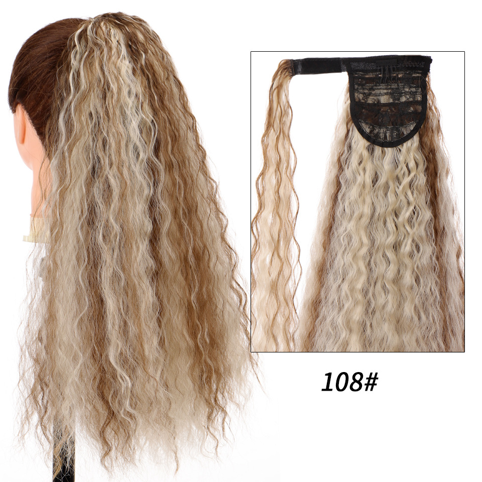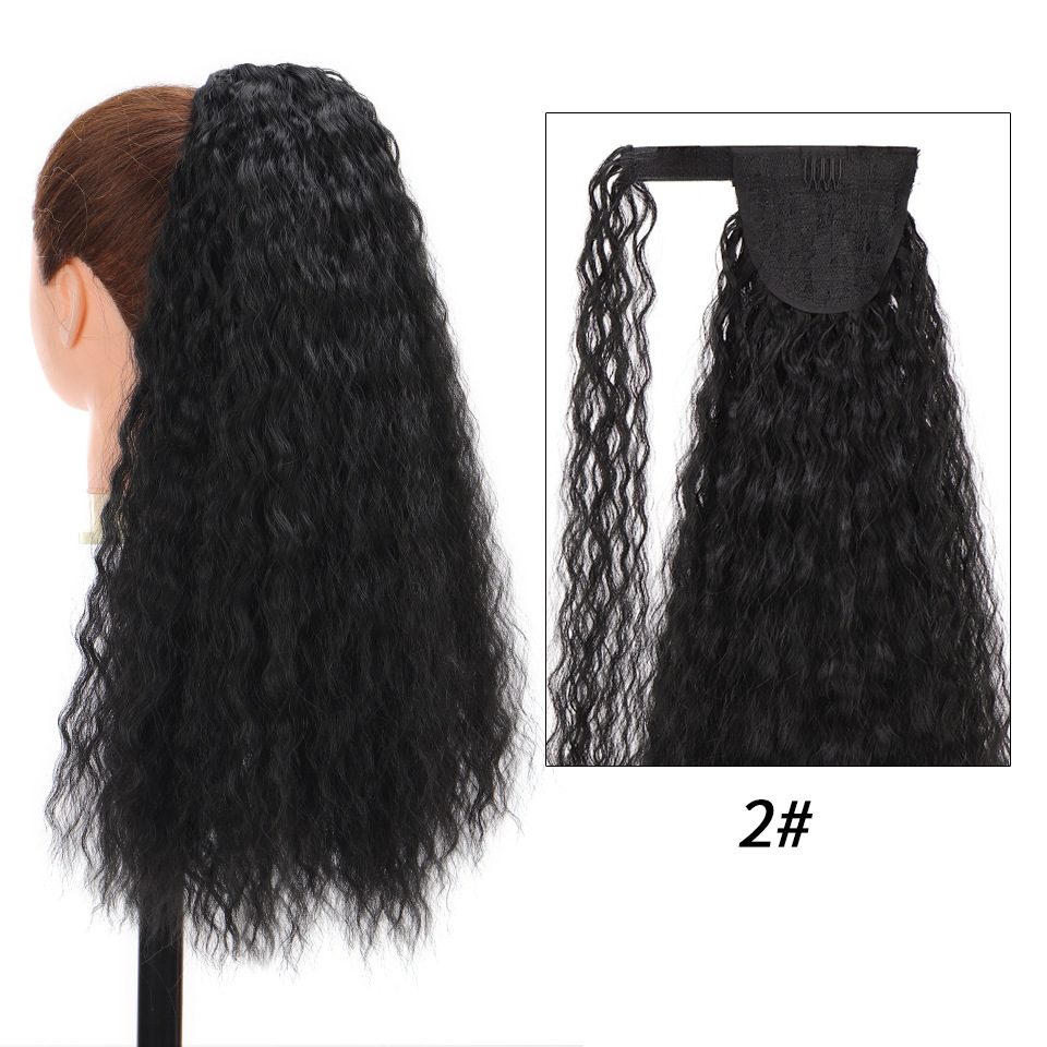 Synthetic wig Velcro Strap Wrap Corn Hot Small Ripple Long Curly Hair with High ponytail