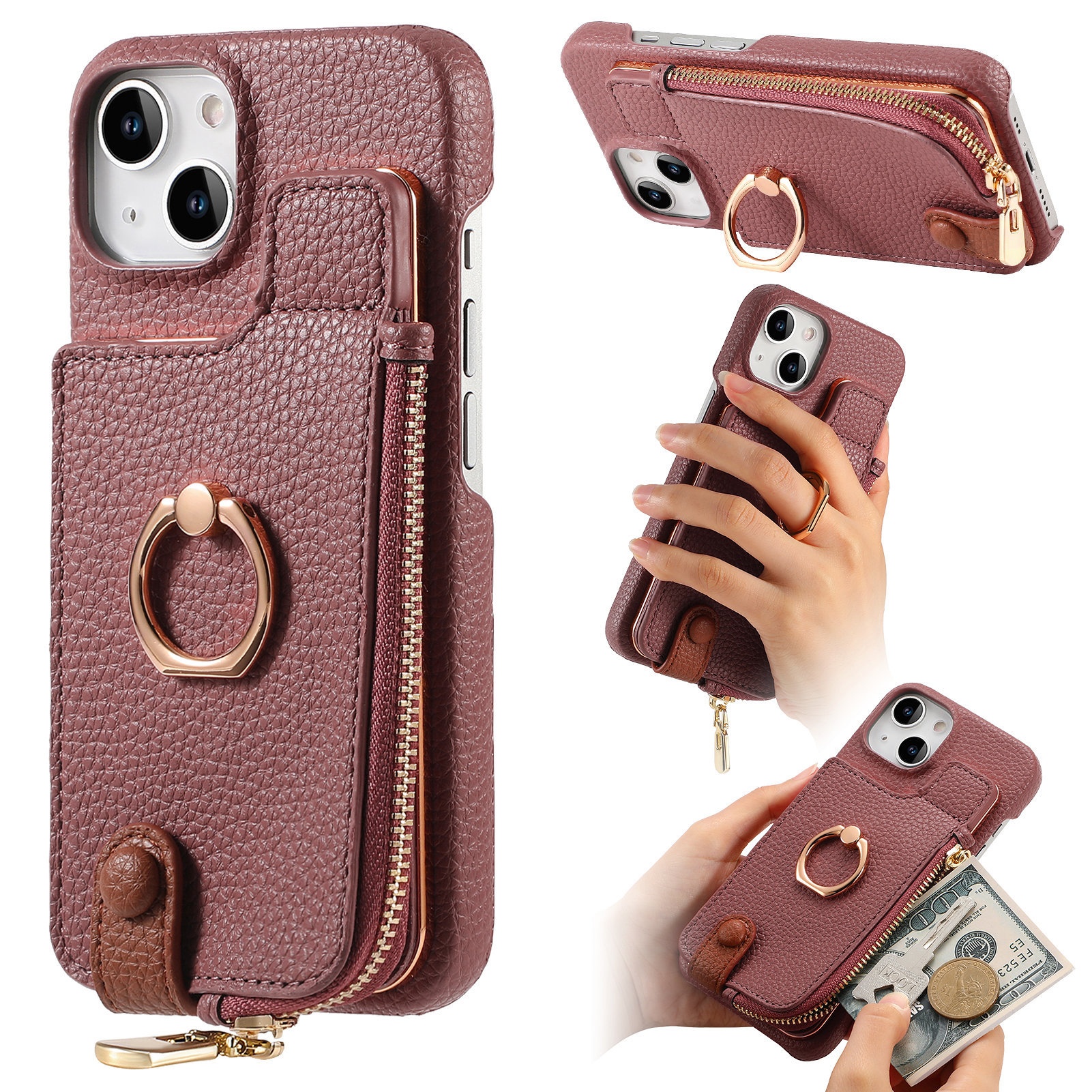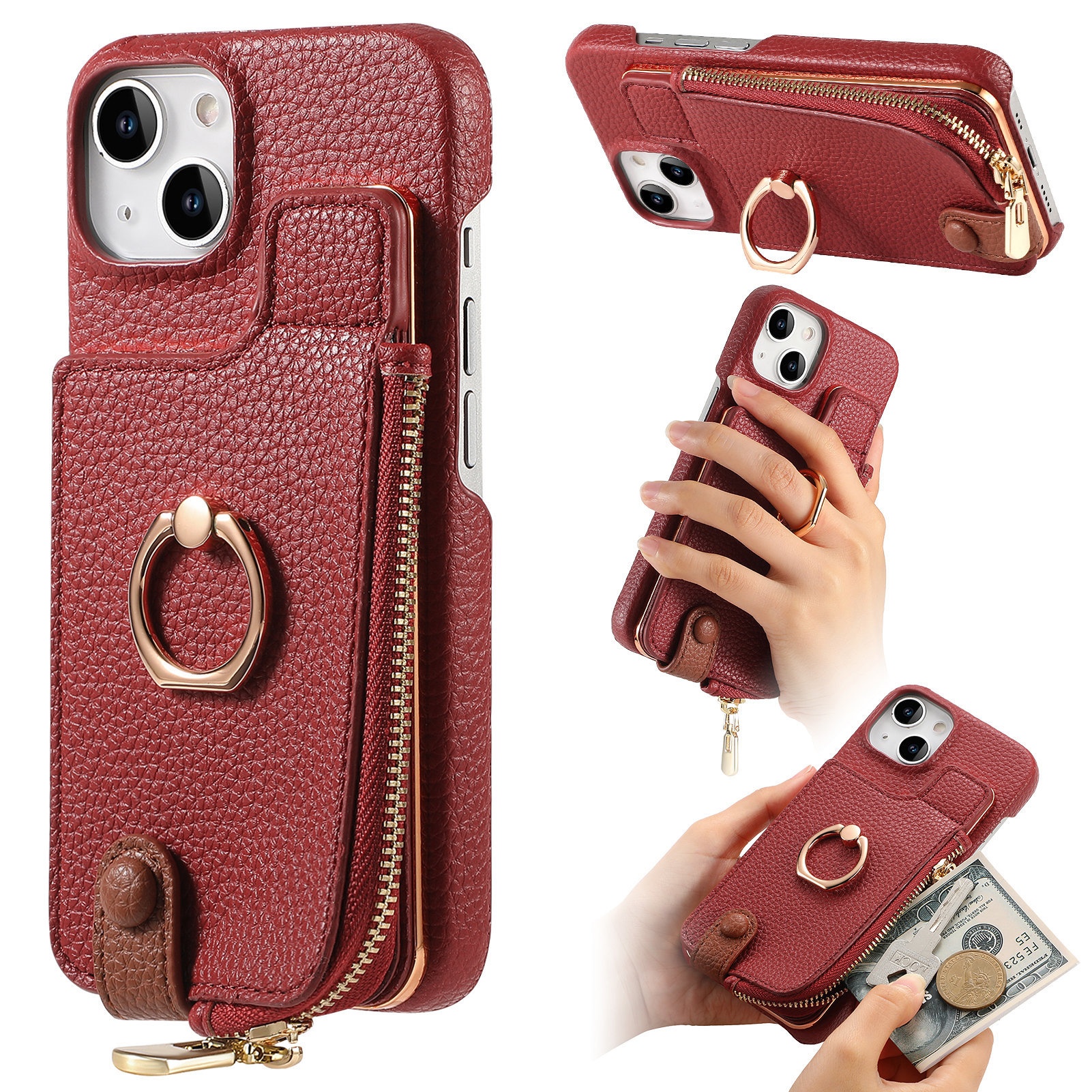 TechGlobe Compatible With 17 Air Lychee Texture Top And Bottom Opening Electroplated Oil Edge Solid Color Ring Card Slot