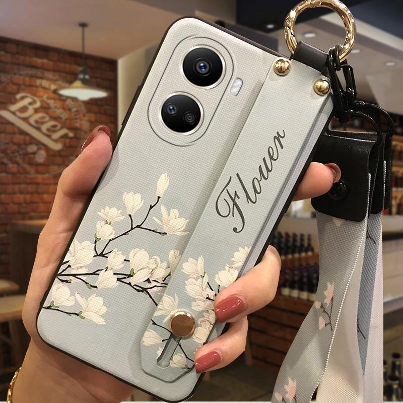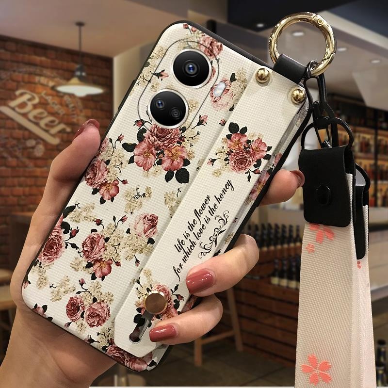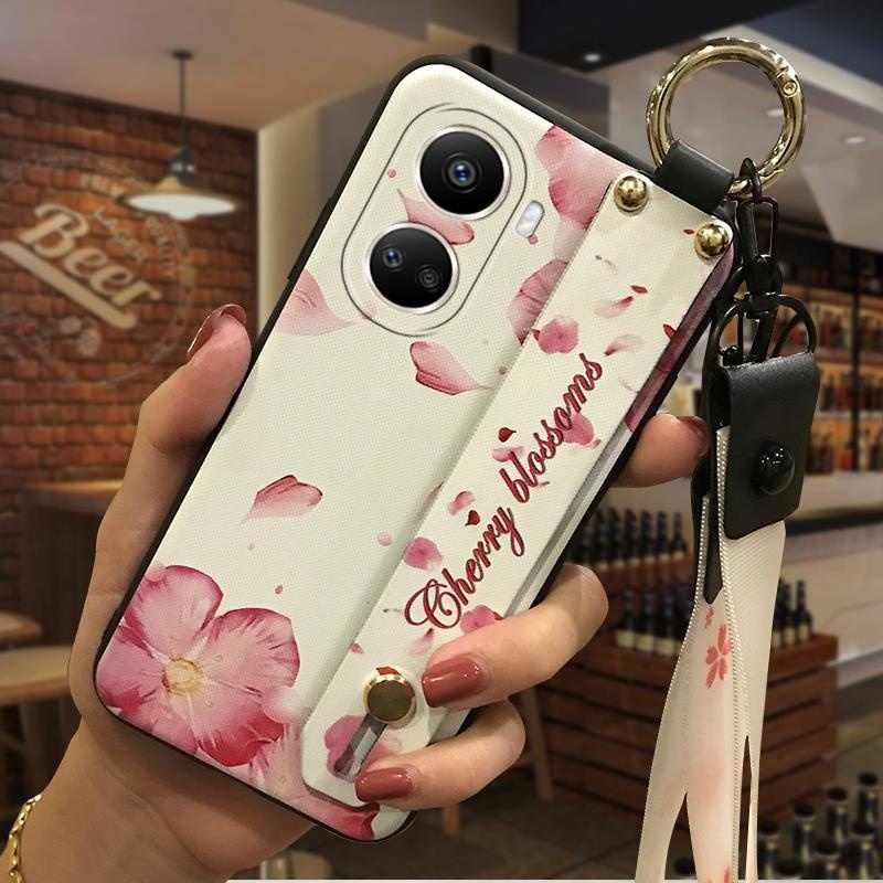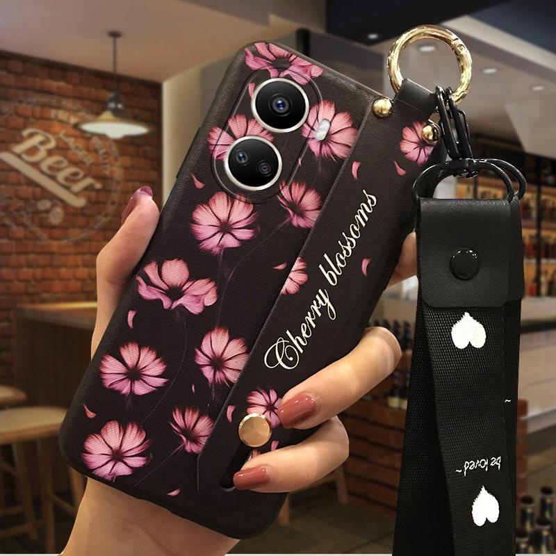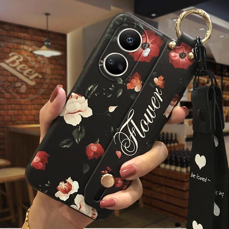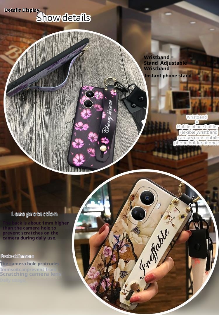 TechGlobe Compatible With IPhone Samsung Phone Case Oppo Floral Wrist Strap Texture Vivo Retro Trendy Xiaomi Shockproof Huawei
