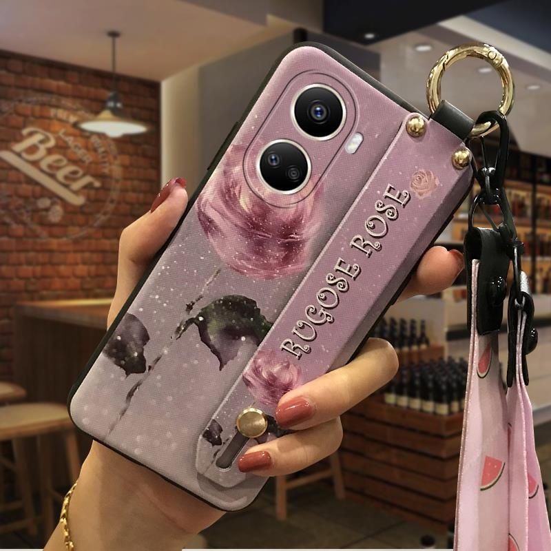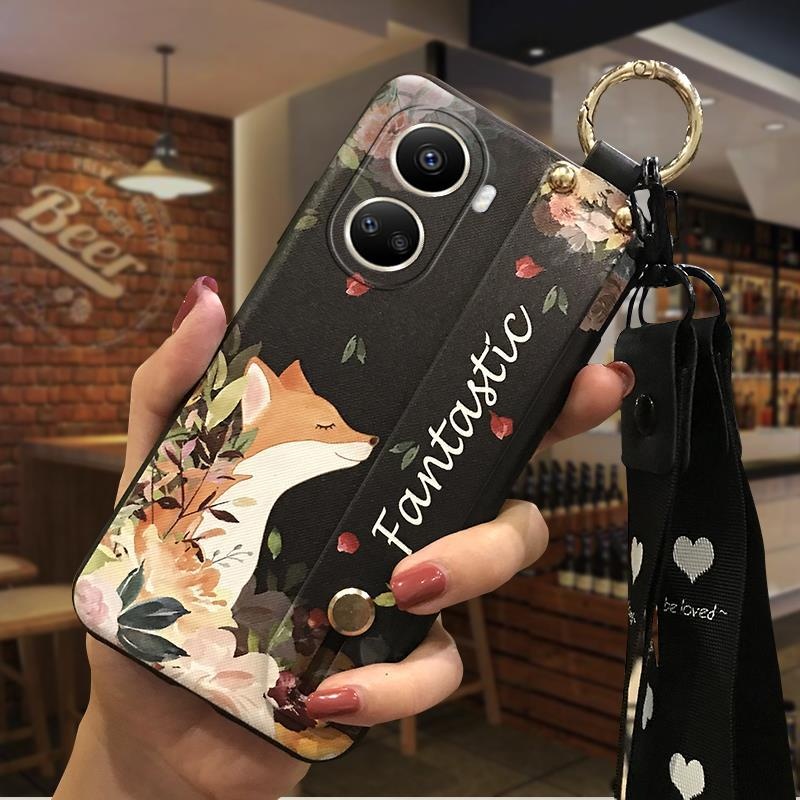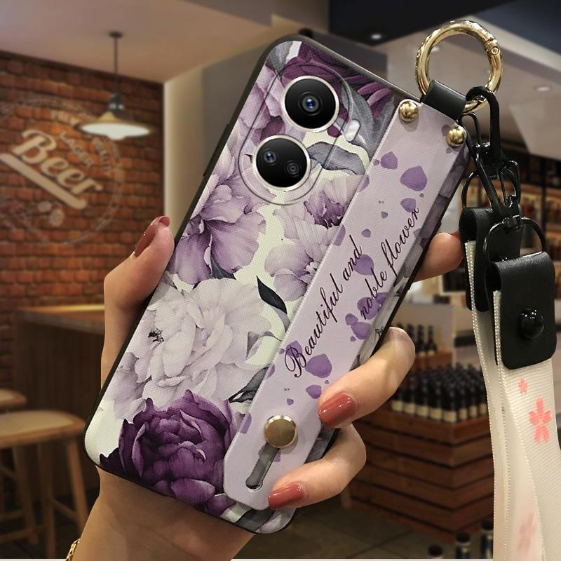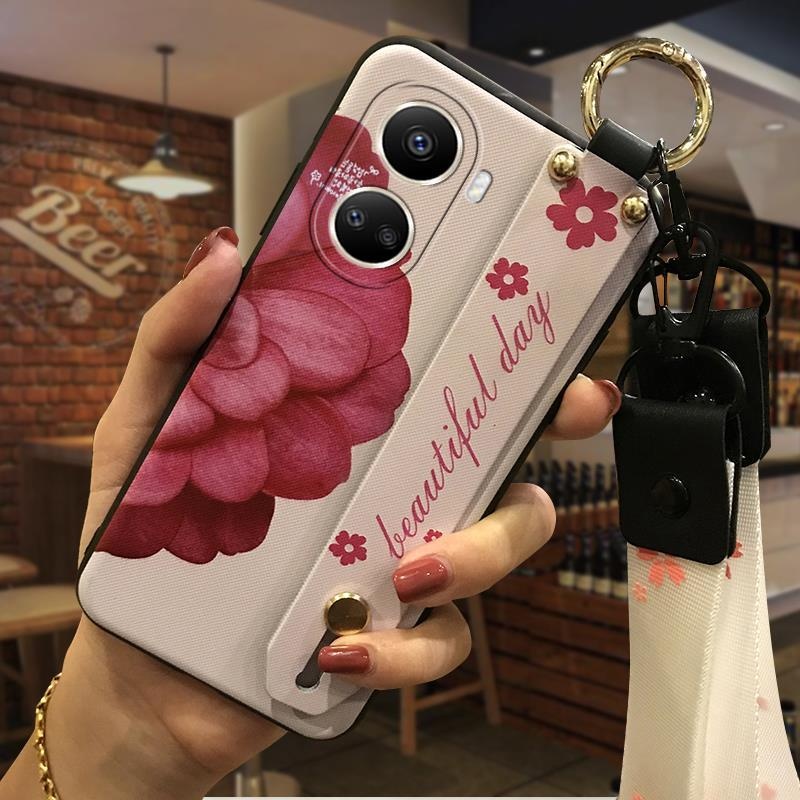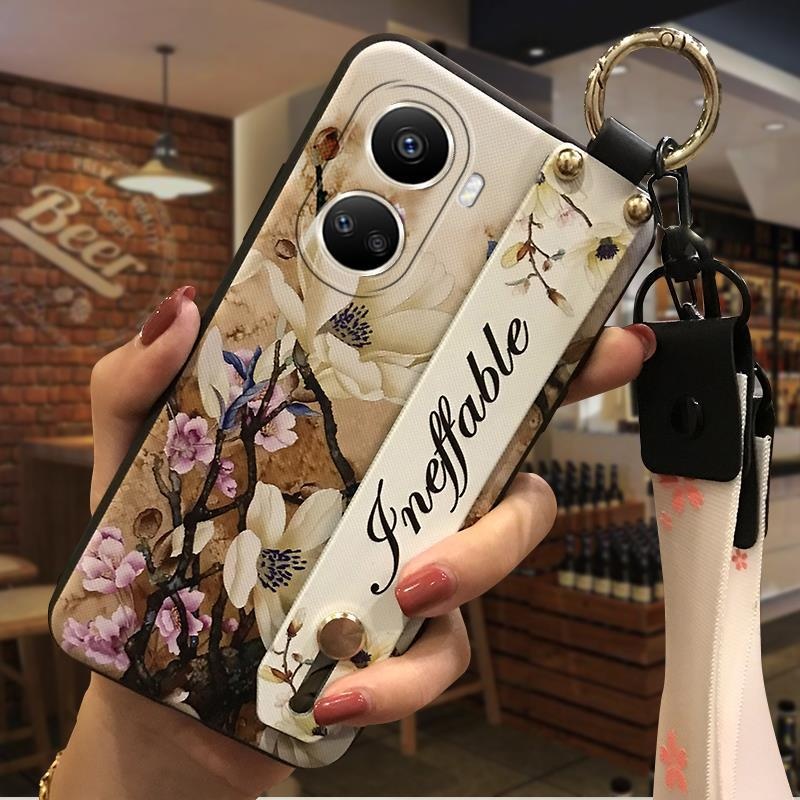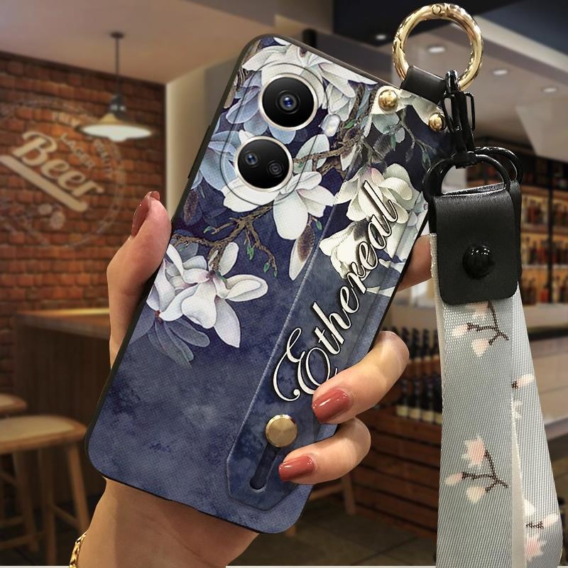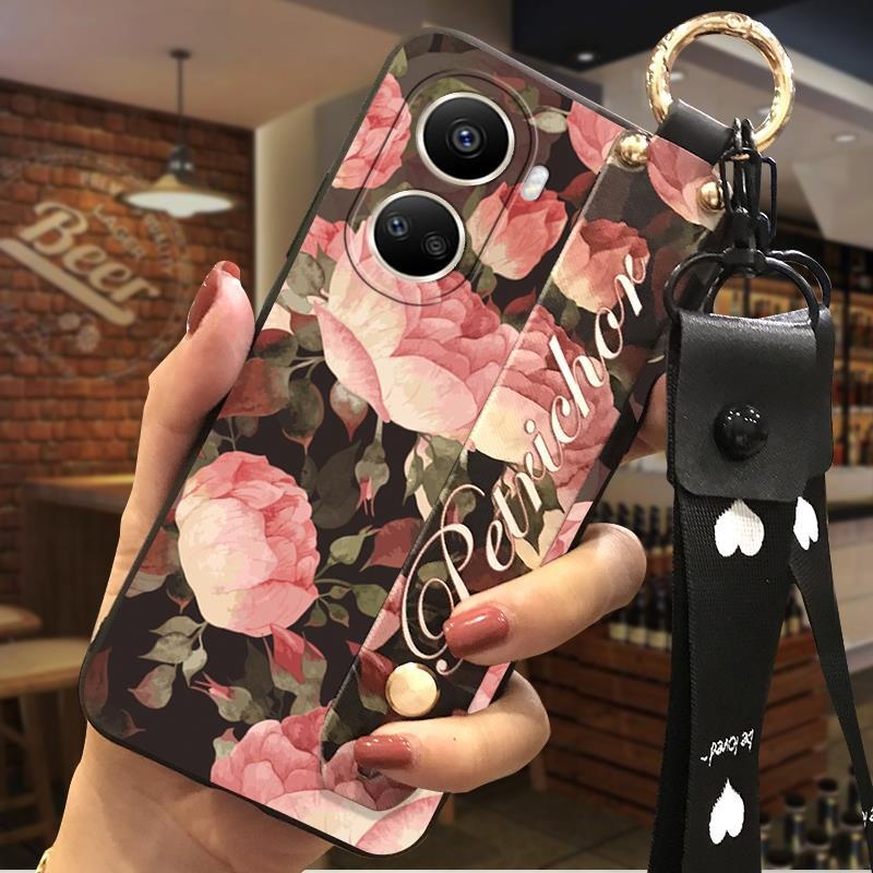 TechGlobe Compatible With IPhone Samsung Phone Case Oppo Floral Wrist Strap Texture Vivo Retro Trendy Xiaomi Shockproof Huawei