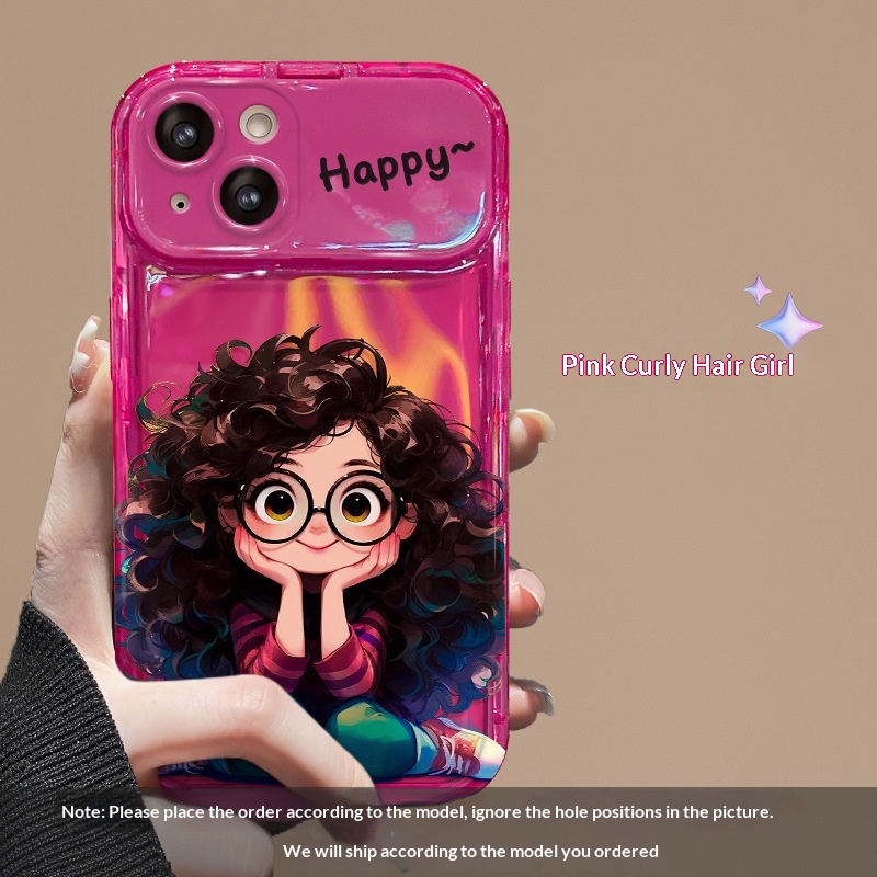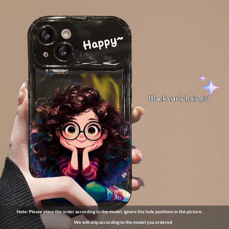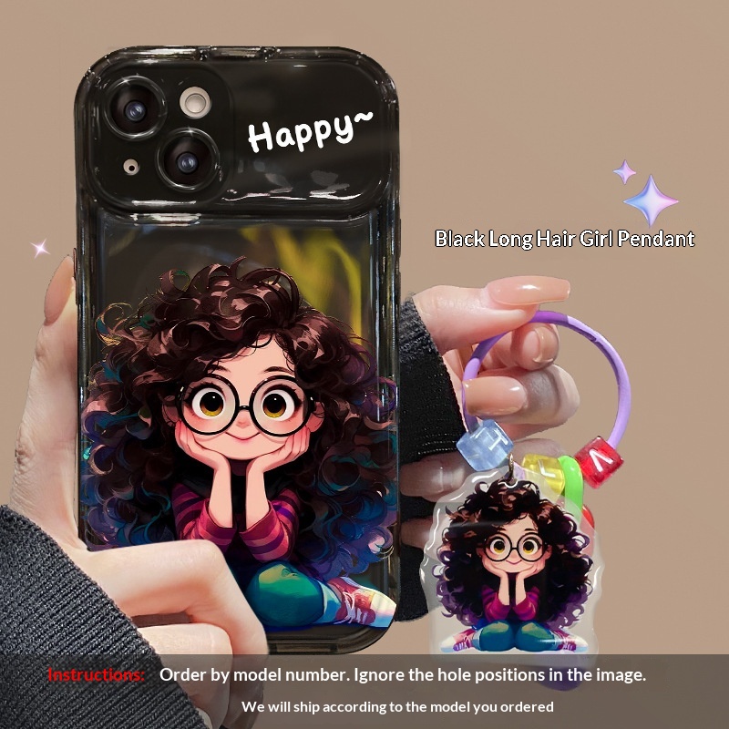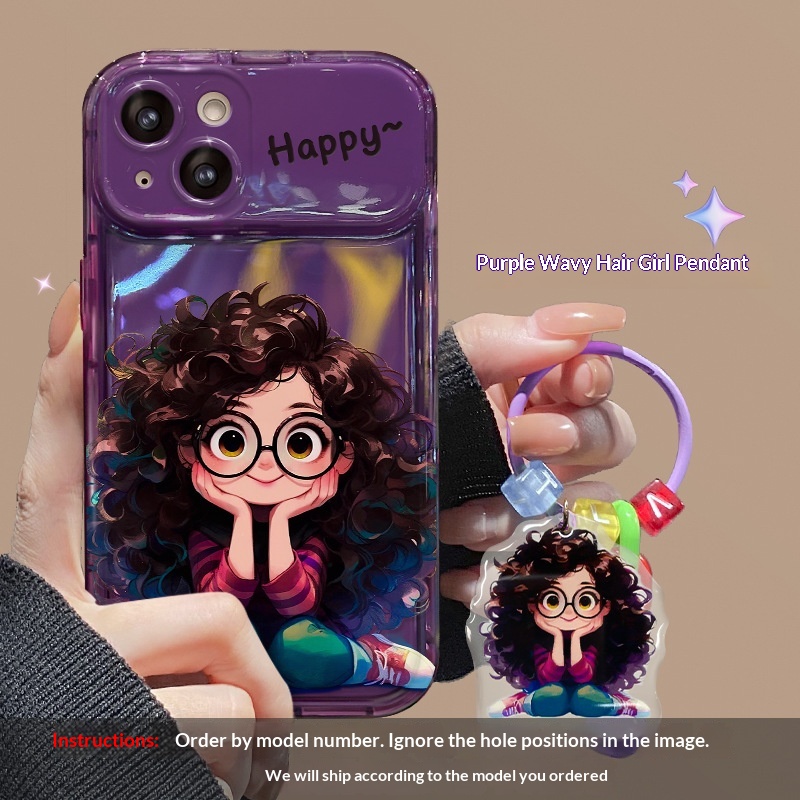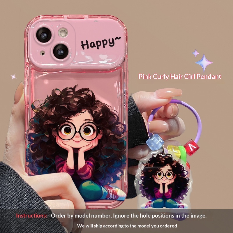 TechGlobe Fluffy Glasses Girl Pendant Compatible With 14pm Phone Case IPhone 15 Flip Mirror 13/12 Transparent 7