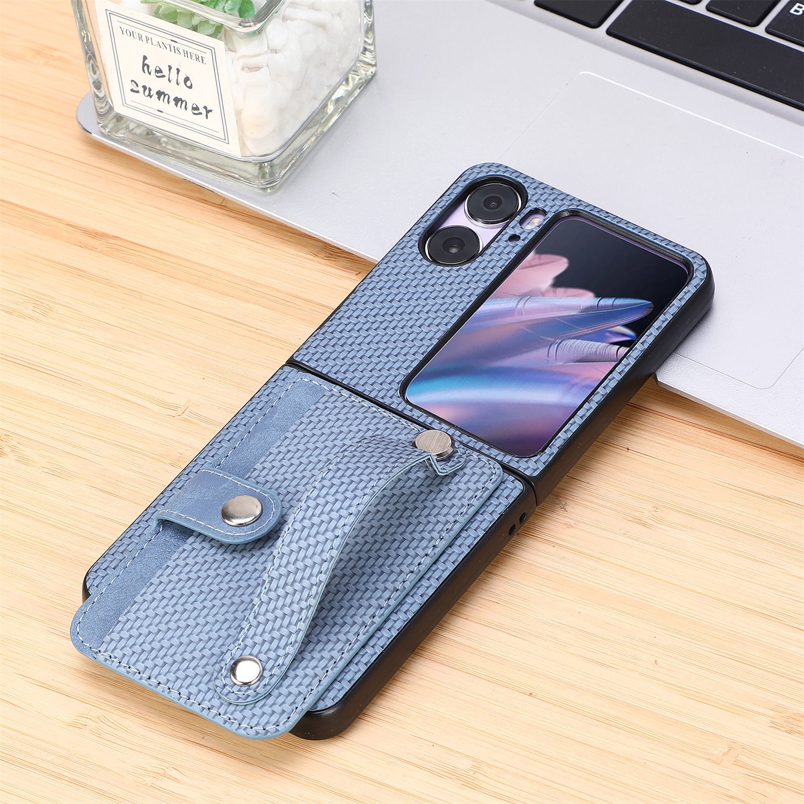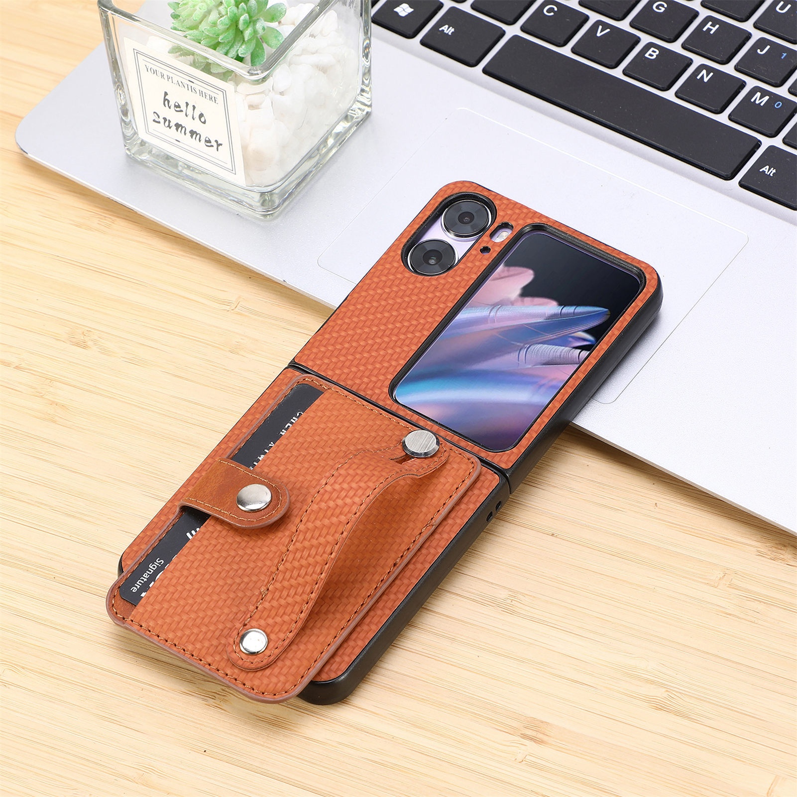 TechGlobe Suitable For OPPO Find N3 Flip Multifunctional Phone Case Creative Stand Card Slot Wrist Strap PC Protective Cover