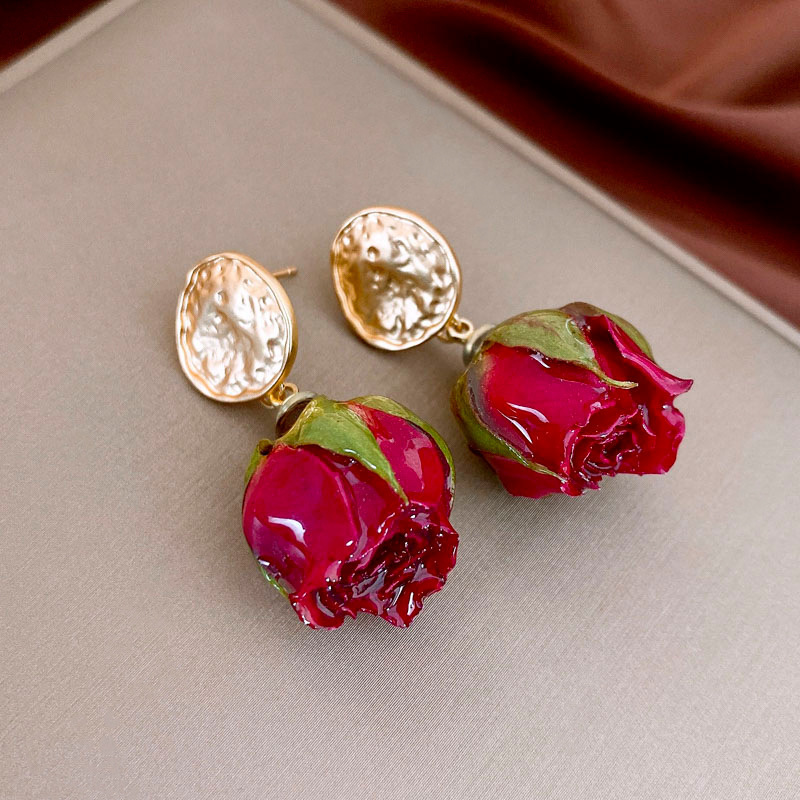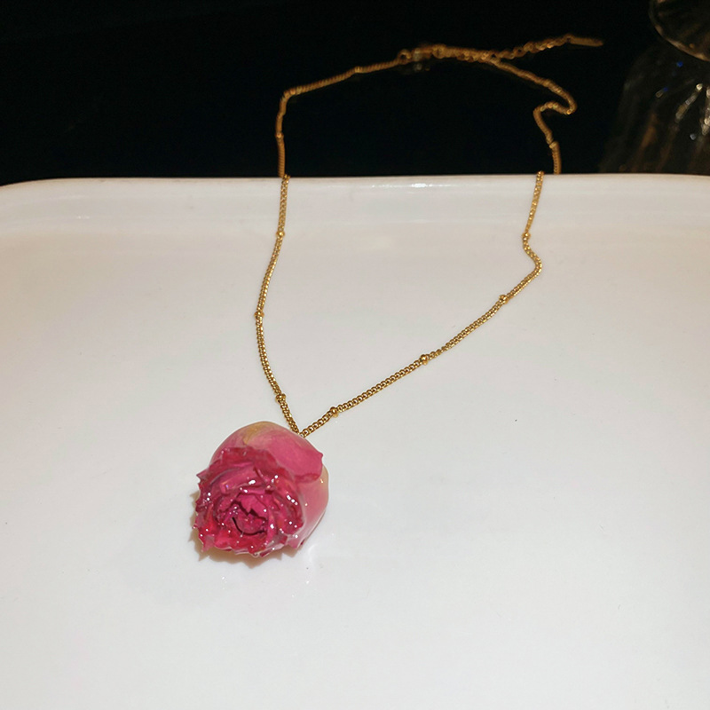 Titanium Steel Stainless Steel Dried Rose Earrings Necklace Set Princess Style Collarbone Chain Elegant Temperament Accessory For Women