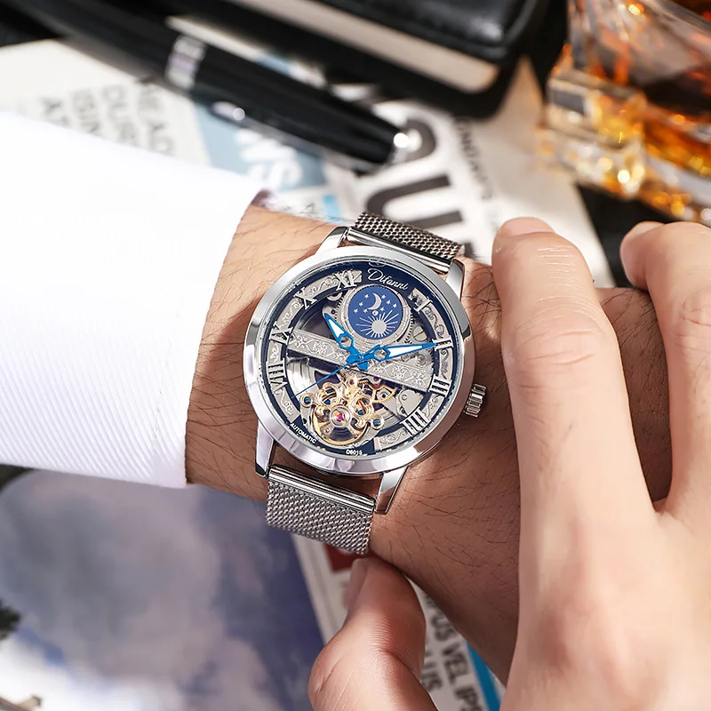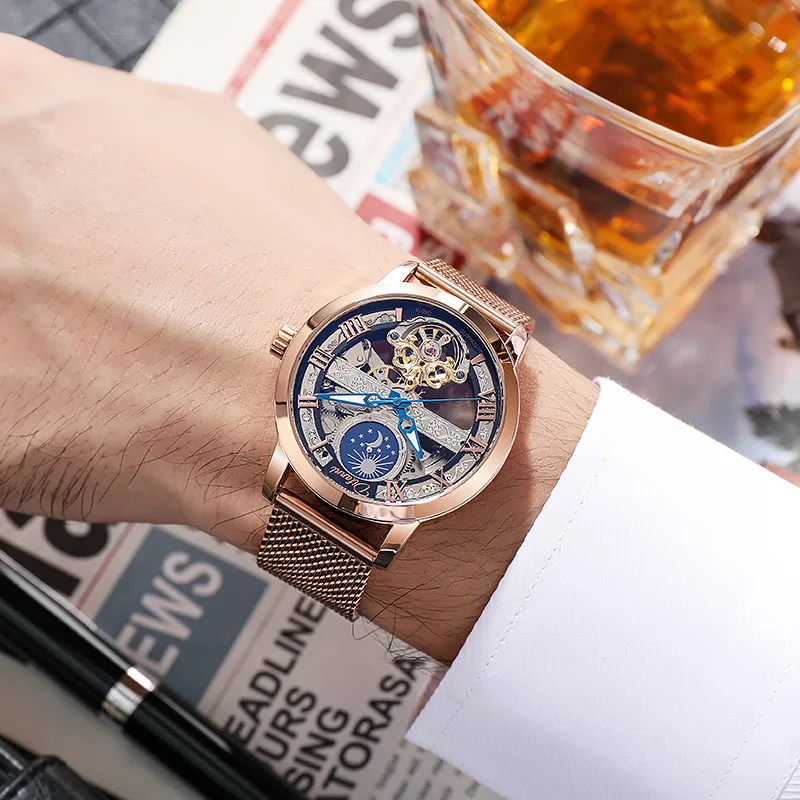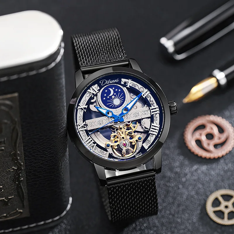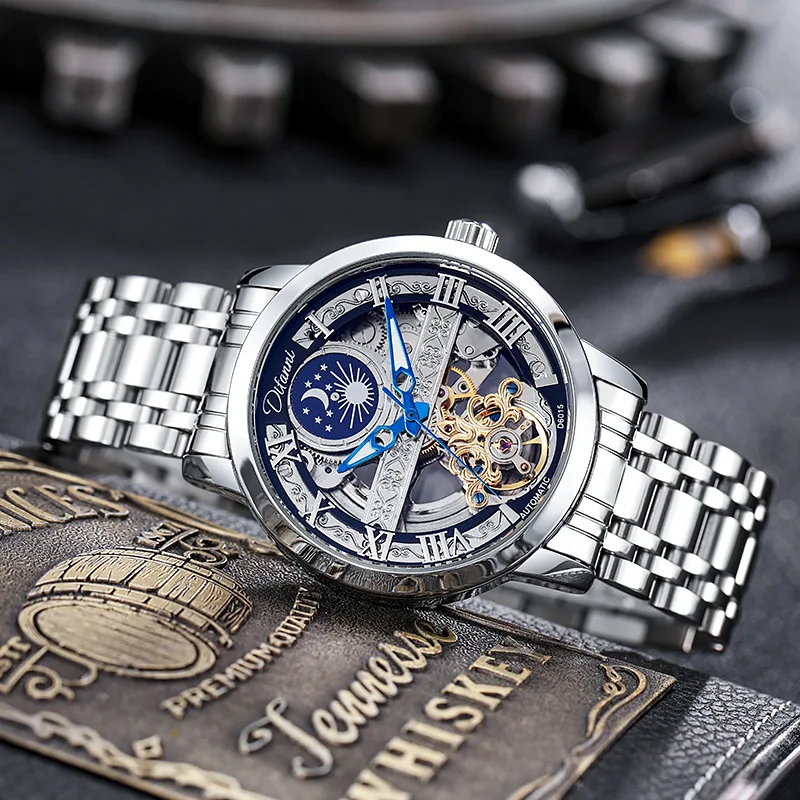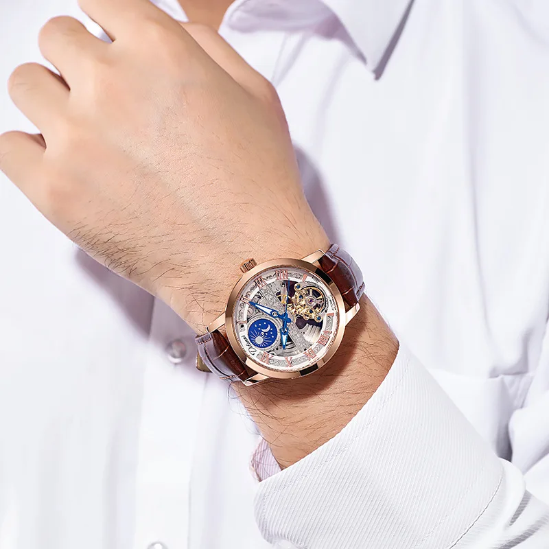 Tourbillon Moon Phase Wrist Luxury Hollow 3ATM Waterproof Stainless Steel Men Automatic Mechanical es es