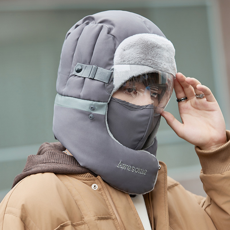 Trapper Hats Hat male winter cotton riding electric bike with wool thickened windproof ear protection hat warm Lei Feng hat female