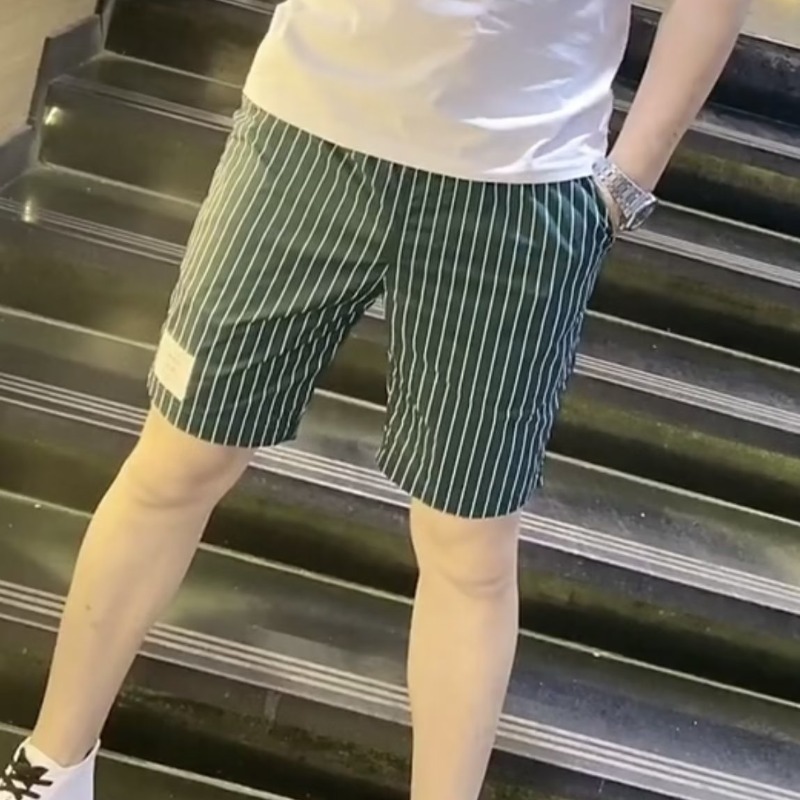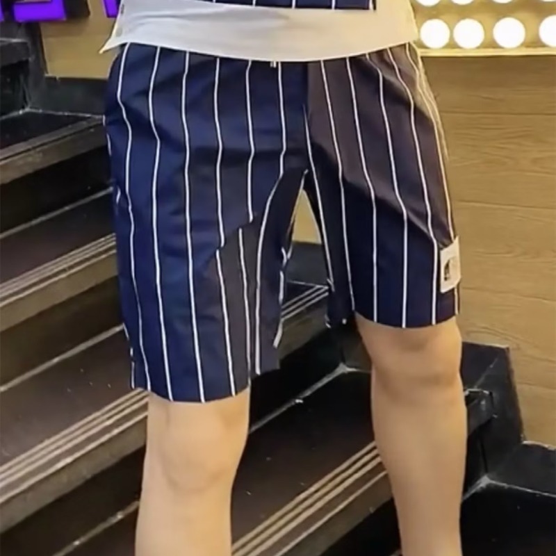 Trendy brand new summer striped cropped pants, popular on the internet for men, with ice silk quick drying pants, beach pants, casual pants, and trendy shorts