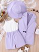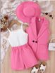 Trendy Spring/Summer Small and Medium School Girl with Sling+Solid Color Sleeveless Suit+Shorts+Hat Set of Four