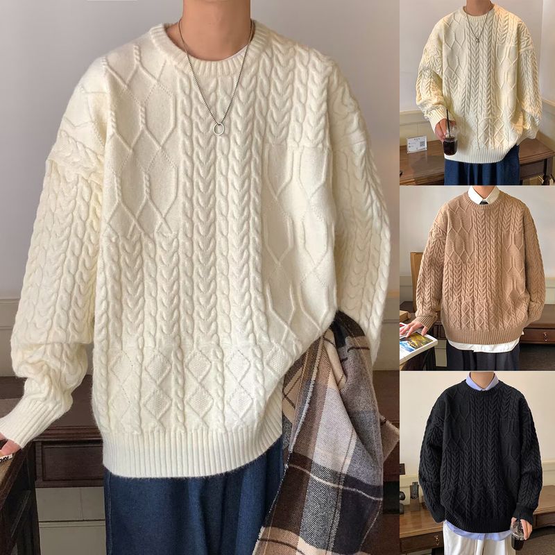 Twist Knit Sweater Men's Solid Color Base Layer Autumn Winter Warm Casual Jacket Trendy