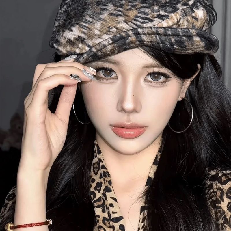 Unique Design German Digital Leopard Print Forward For Women Trendy Street Style Elegant Versatile Newsboy Cap Trend