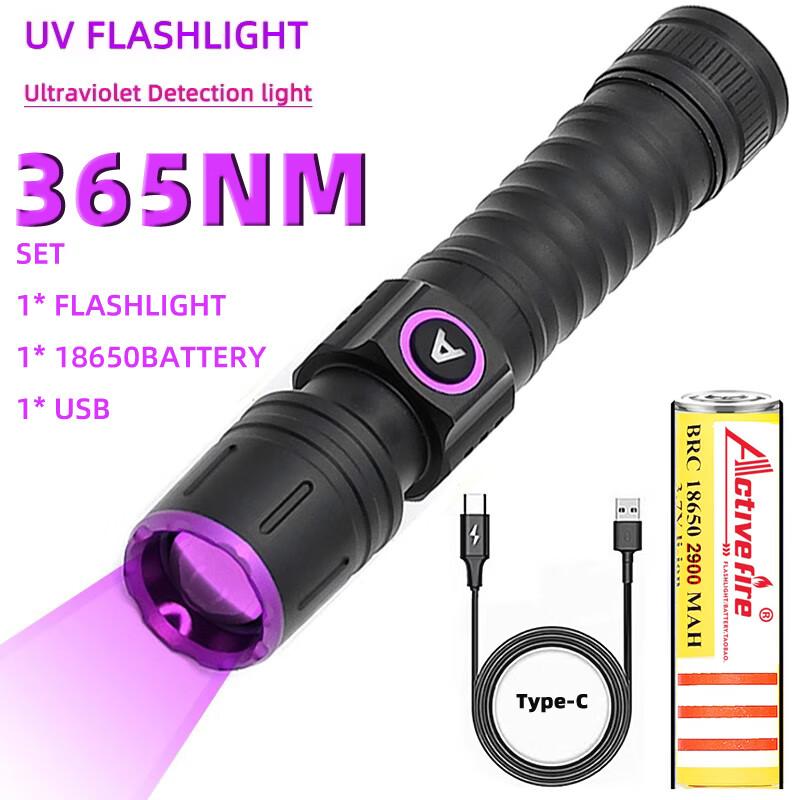Lamp beads: uV LED lamp beadsBattery: high-power lithium batteryZoom: Telescopic zoom