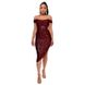 Verve Women's Summer Sequin Side Slit Gown French Off-Shoulder Bodycon Dress