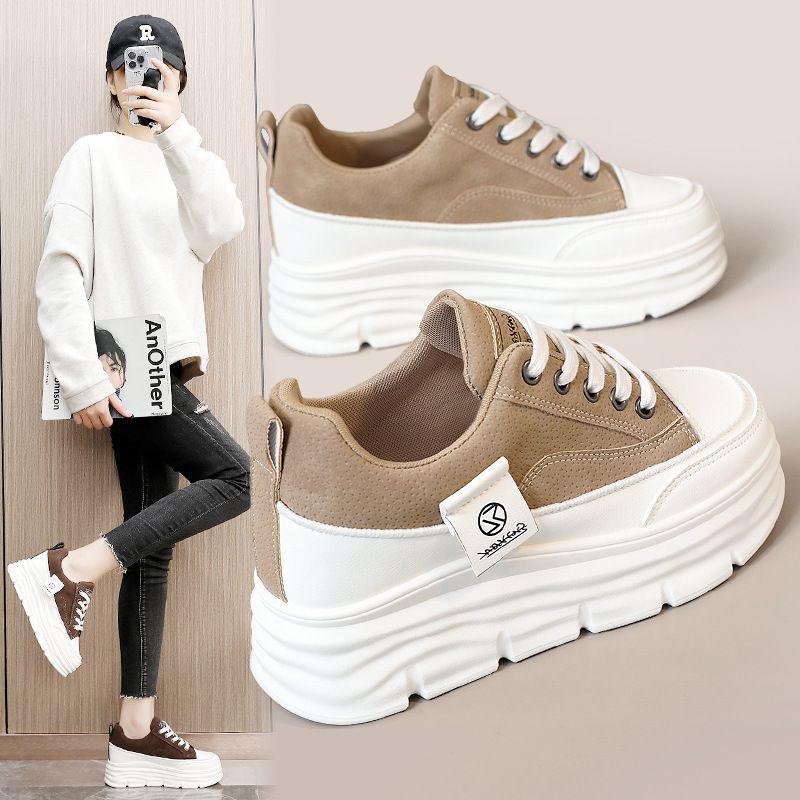 W3677 new color blocked women's shoes, 2024 autumn height increasing thick sole wear-resistant versatile student breathable board shoes