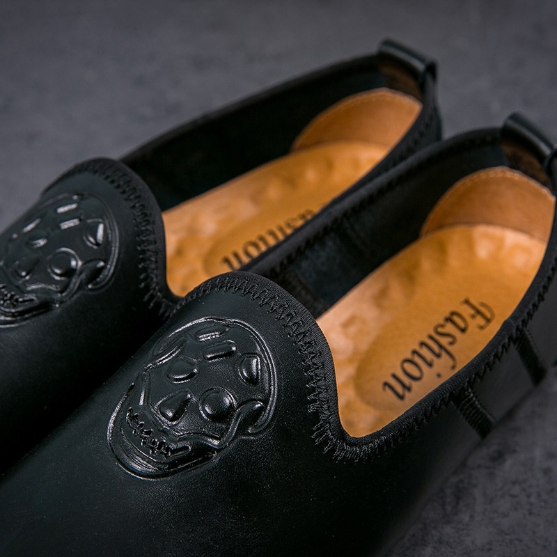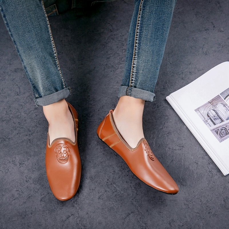WalkPrime WalkPrime European Station Autumn Hairstylist Small Leather Skull Trendy New Men's Single Loafers Lazy Shoes Youth