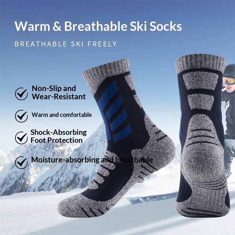 Fabric Name:Cotton,Seamless Stitching:No: Machine-sewn edges,Functionality:Anti-slip, antibacterial, sweat-absorbent,Pattern:Color Blocking,Packaging form:Bagged,Applicable Gender:Male,Suitable age group:Youth 18-40 years old, middle-aged 40-60 years old, teenagers 13-18 years old,Main fabric composition:Cotton,High-waisted:Mid-Calf,Number of stitches:144N,Time to market:Autumn 2024,Suitable for the season:Summer, Winter, Spring, Autumn, All-season,Product Category:Professional Sports Socks,Applicable Scenarios:Skiing,Item Number:Ski Socks,Brand:Qixiang,Color:Blue, Green, Gray-Orange, Gray-Blue,Ingredients and Content:Wool and cotton,Main fabric ingredient content:50% included - 70% excluded,Weaving Techniques:Single Needle,Year/Season of Release:2024 Autumn