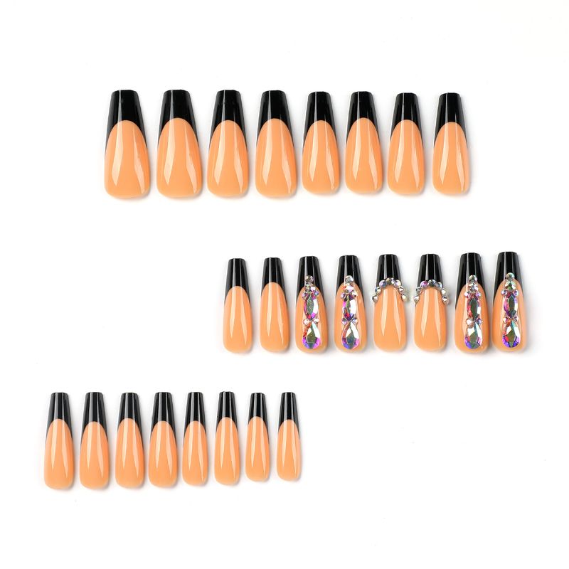 Wearing Black French Style With Explosive Sparkling Rhinestones, Press On Nail Armor Pieces