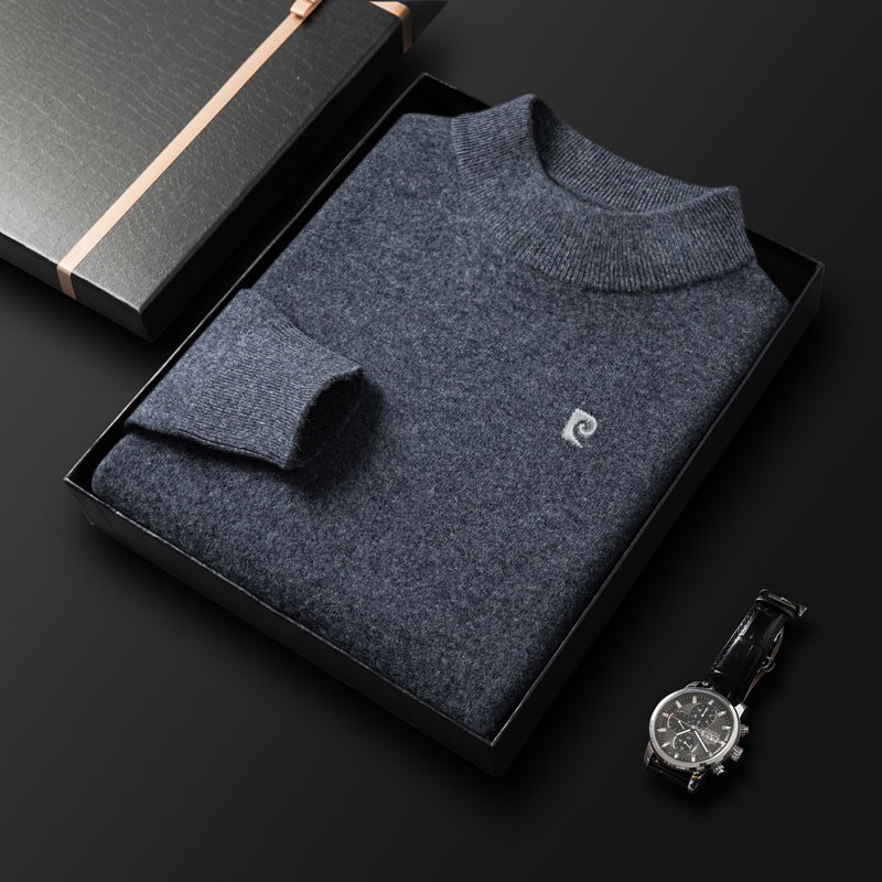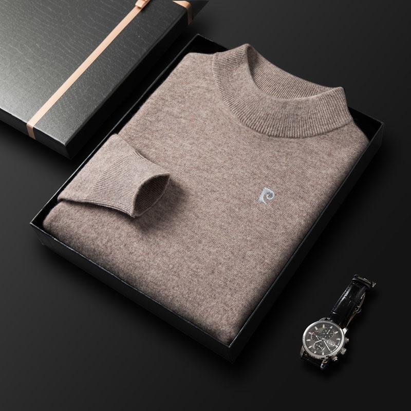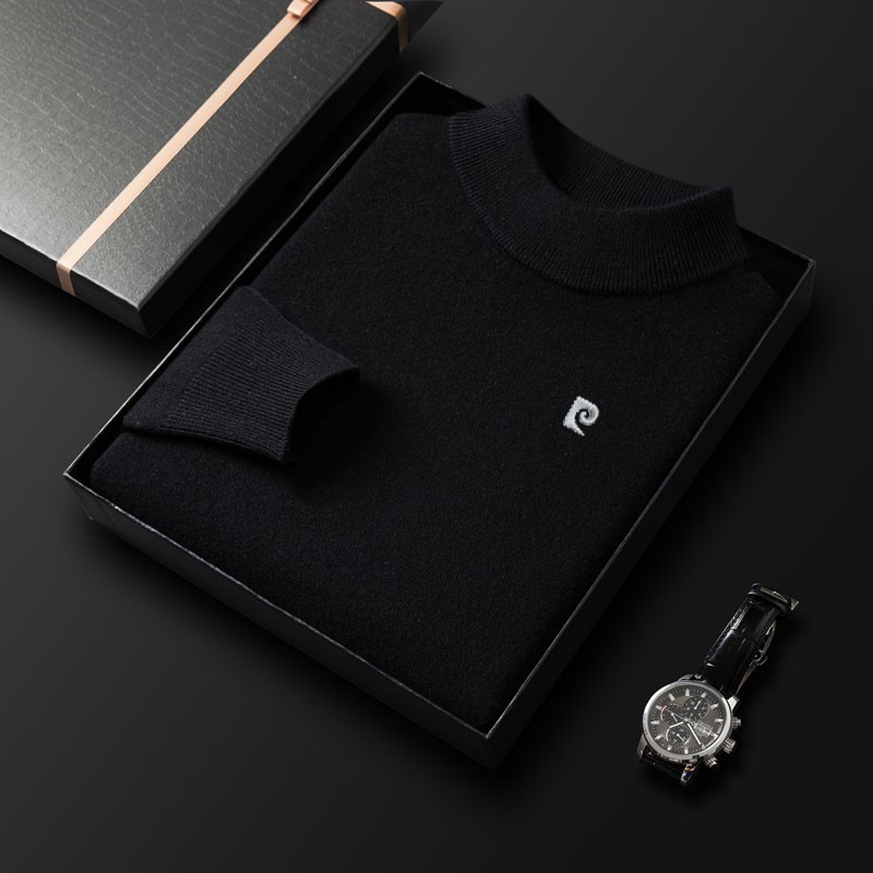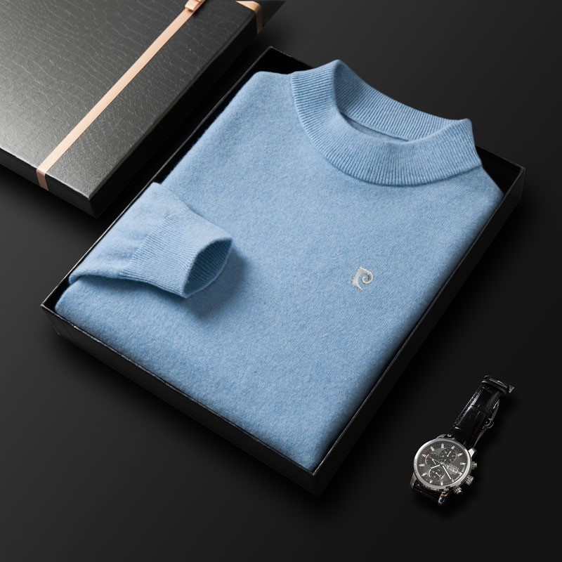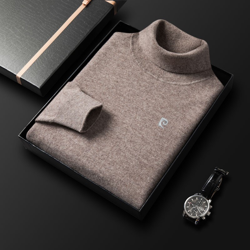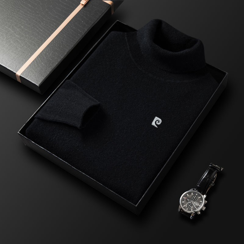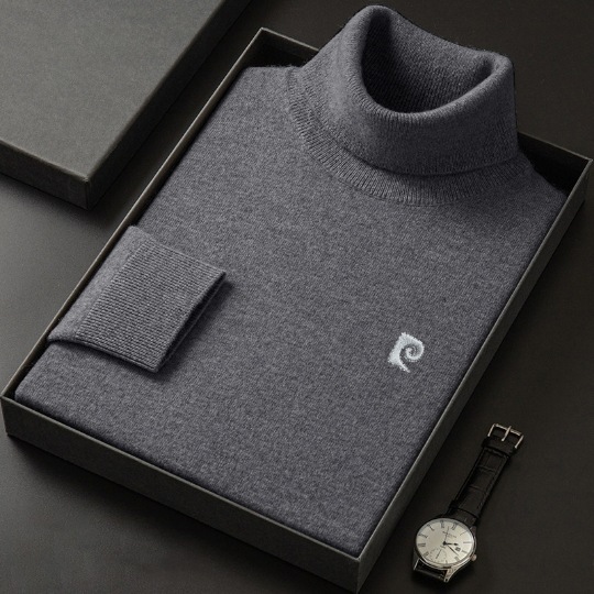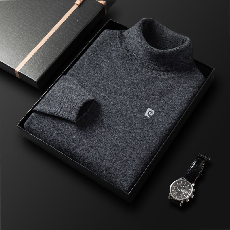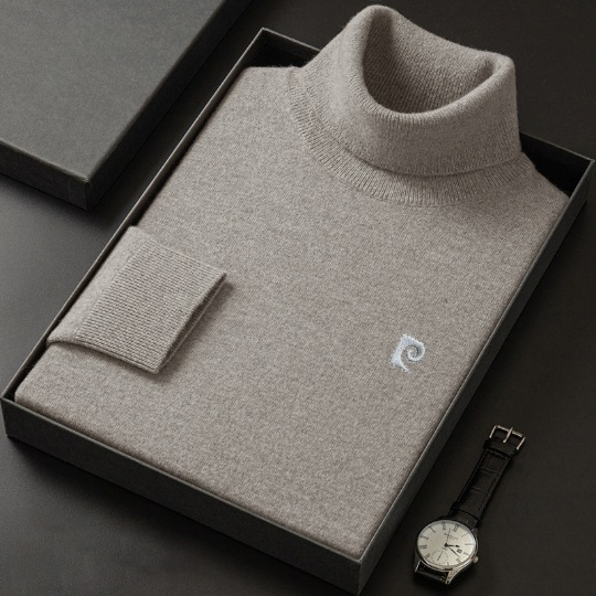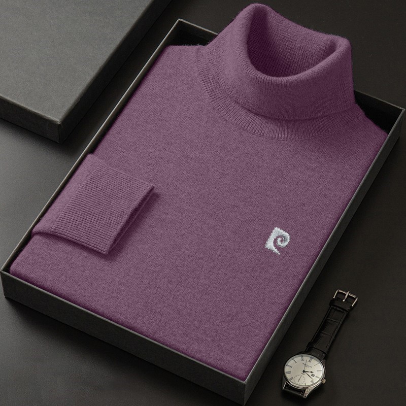 Winter Men's Embroidery Solid Color Turtleneck Thickened Warm Inner Sweater Casual Bottoming Knitted Sweater