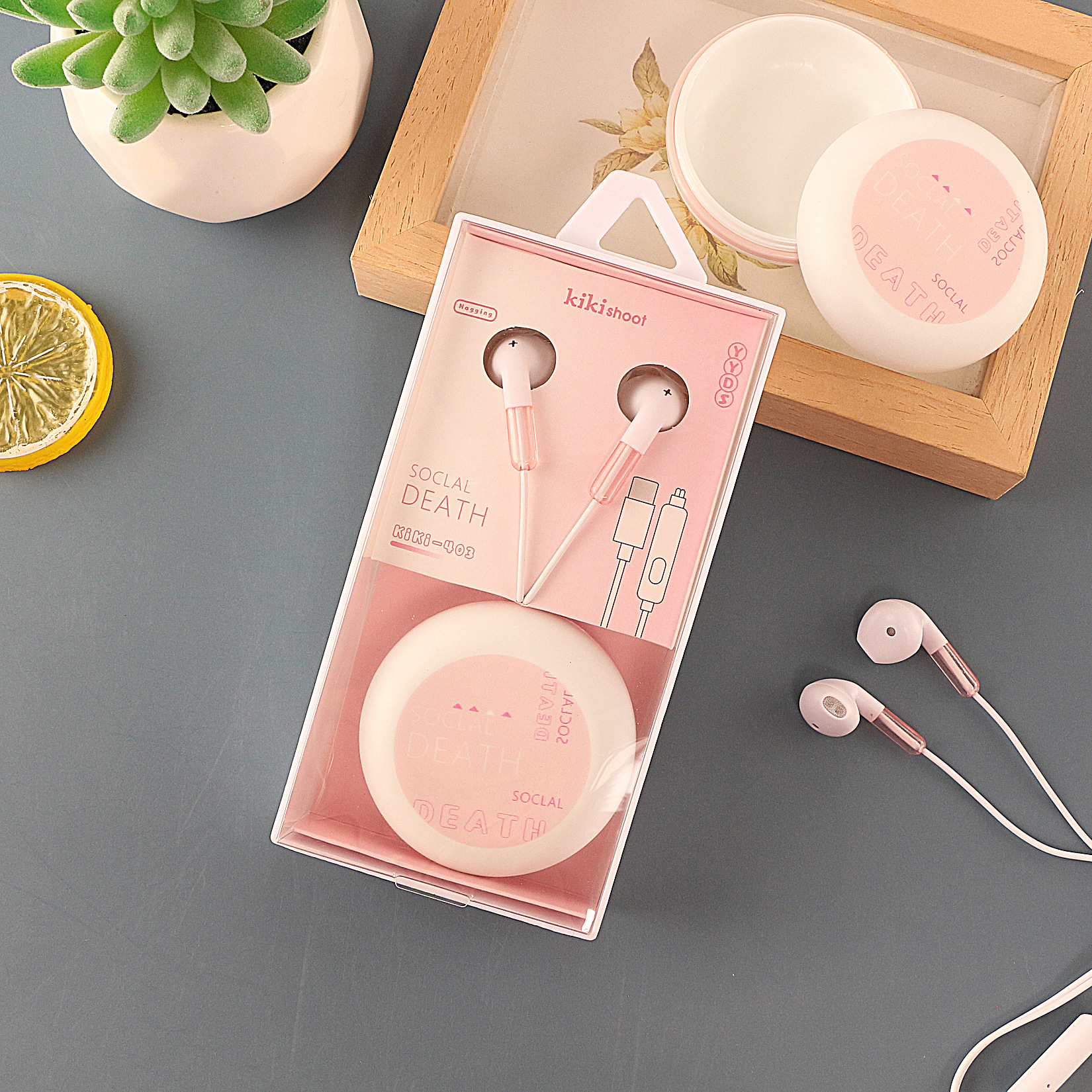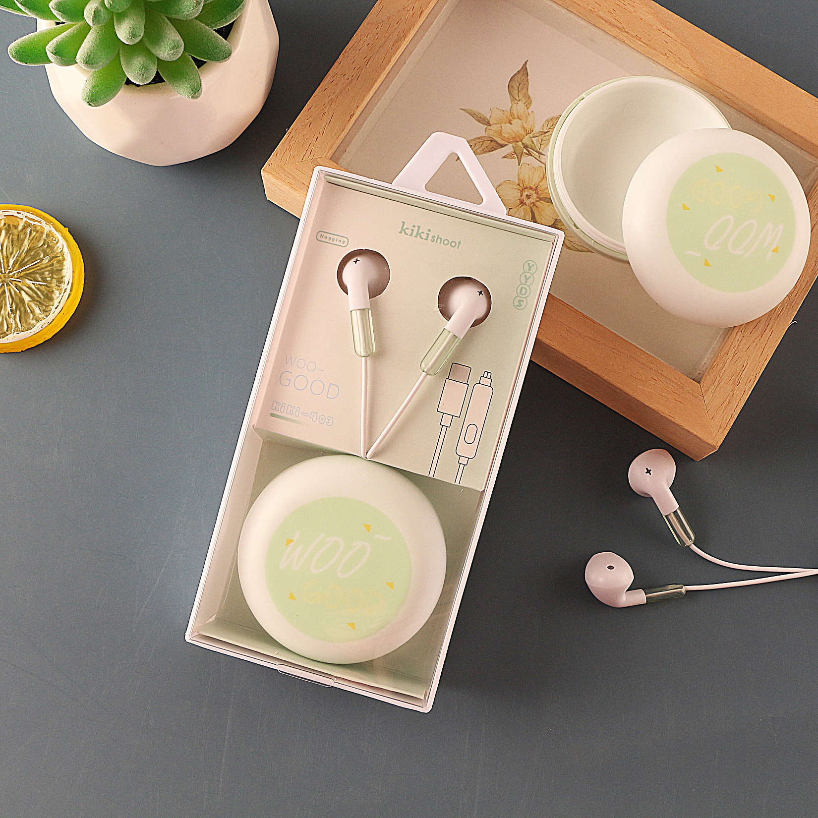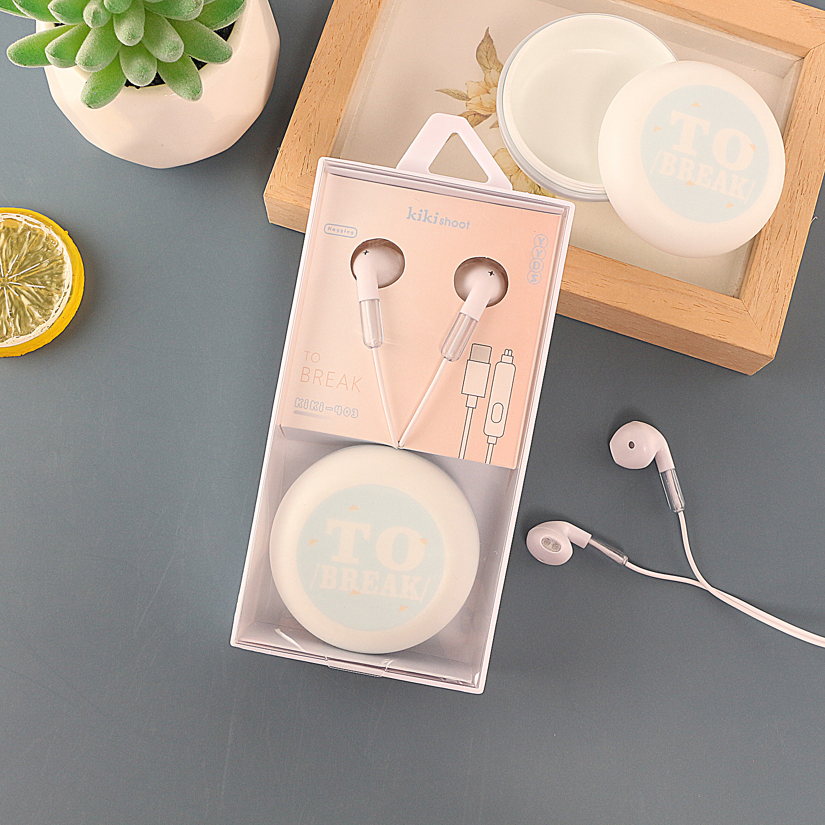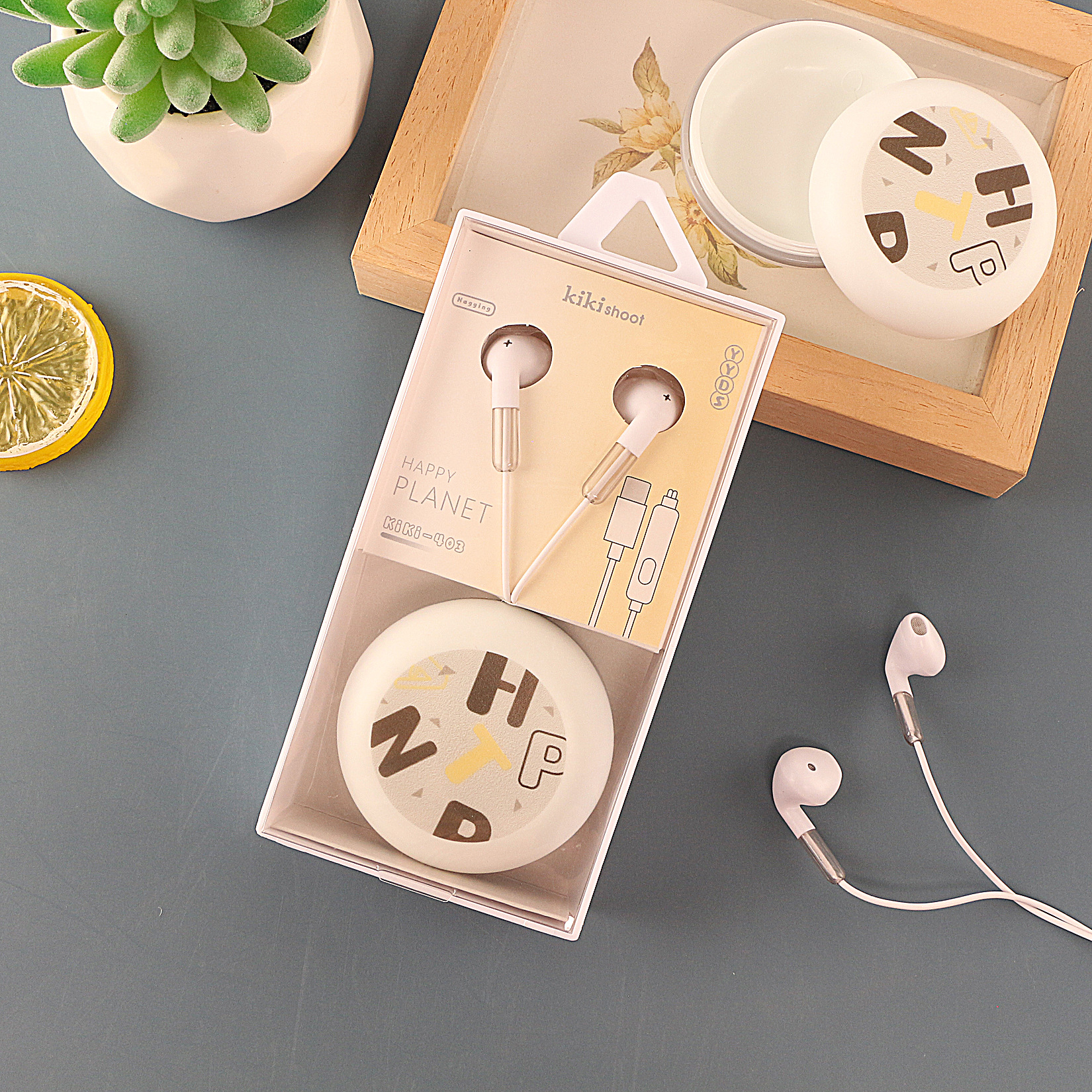 Kiki cute storage wired suitable for Huawei Type-C wide mouth student cartoon box earphones