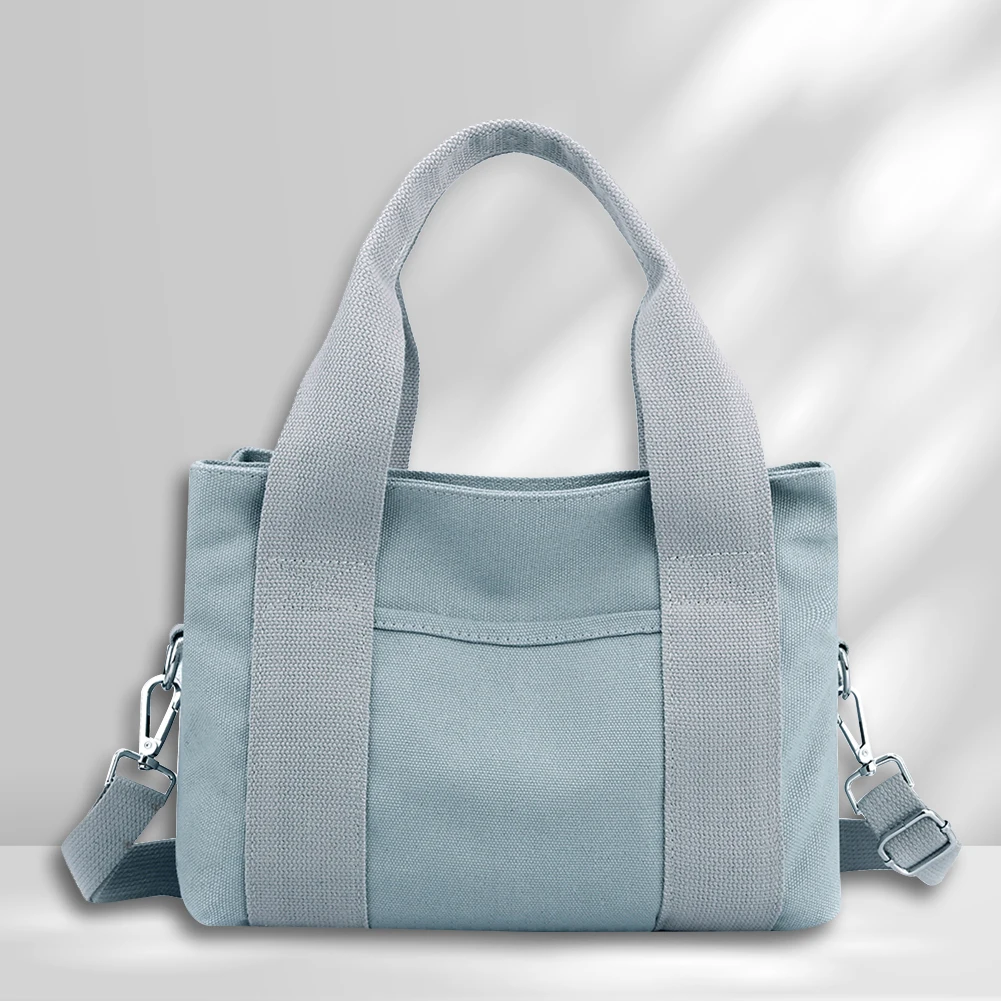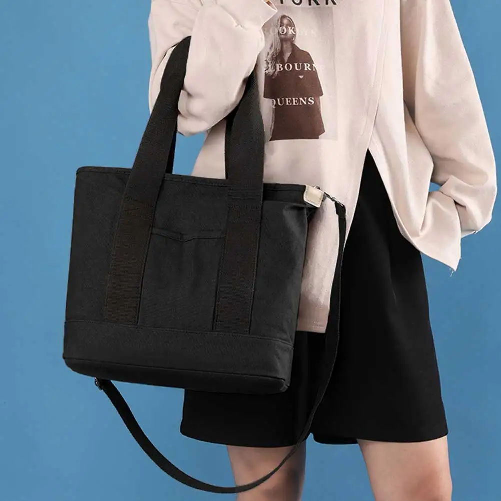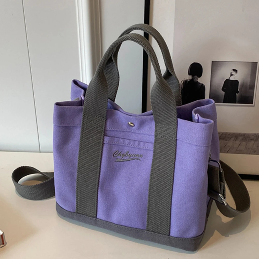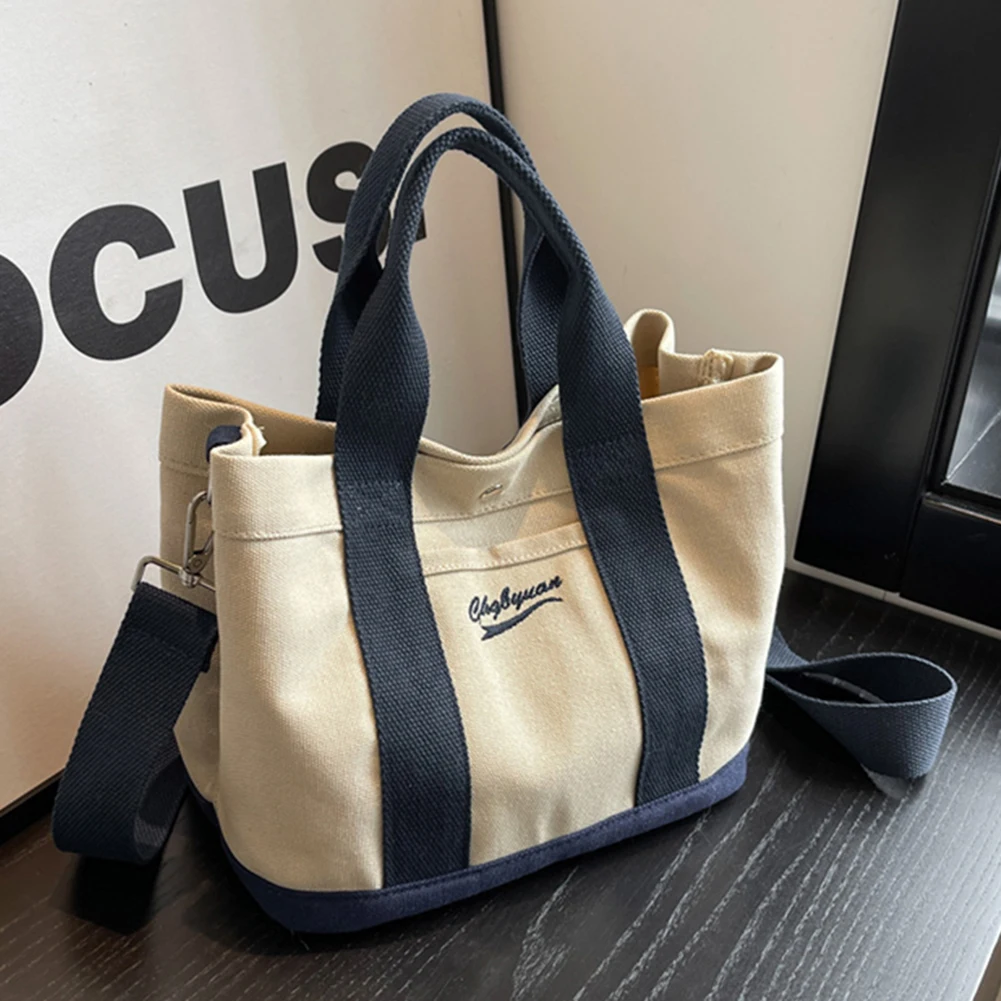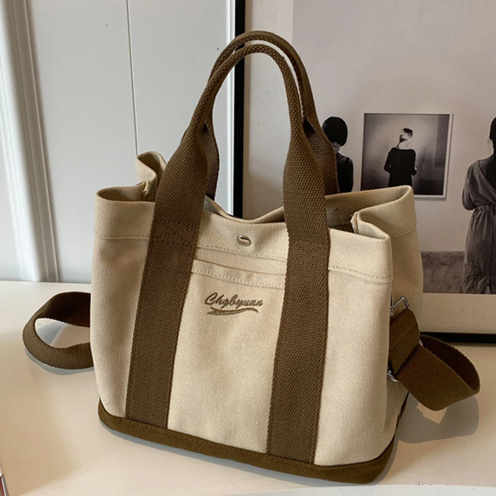 Women Fashion Shoulder Wide Adjustable Strap Canvas Simple Shopping Multi-Pockets Patchwork Tote Handbag Daily Sling Bag