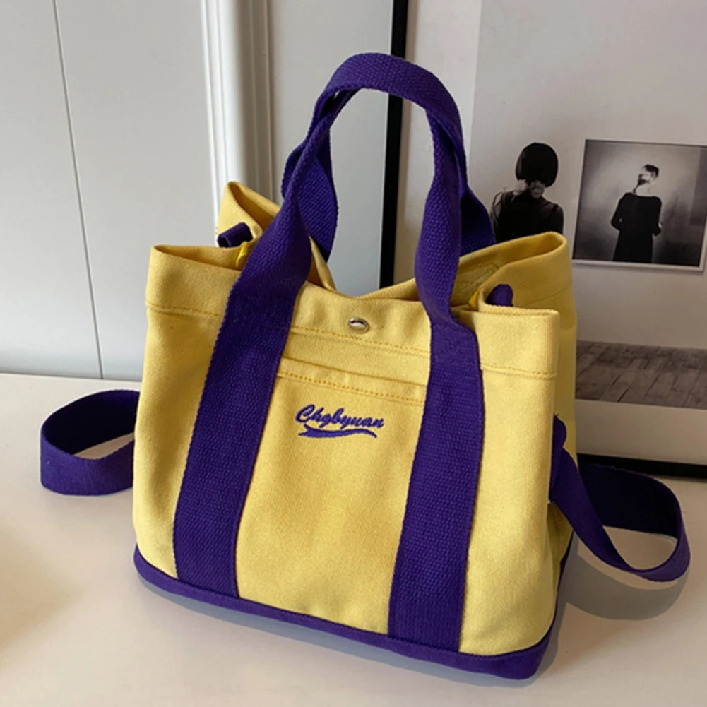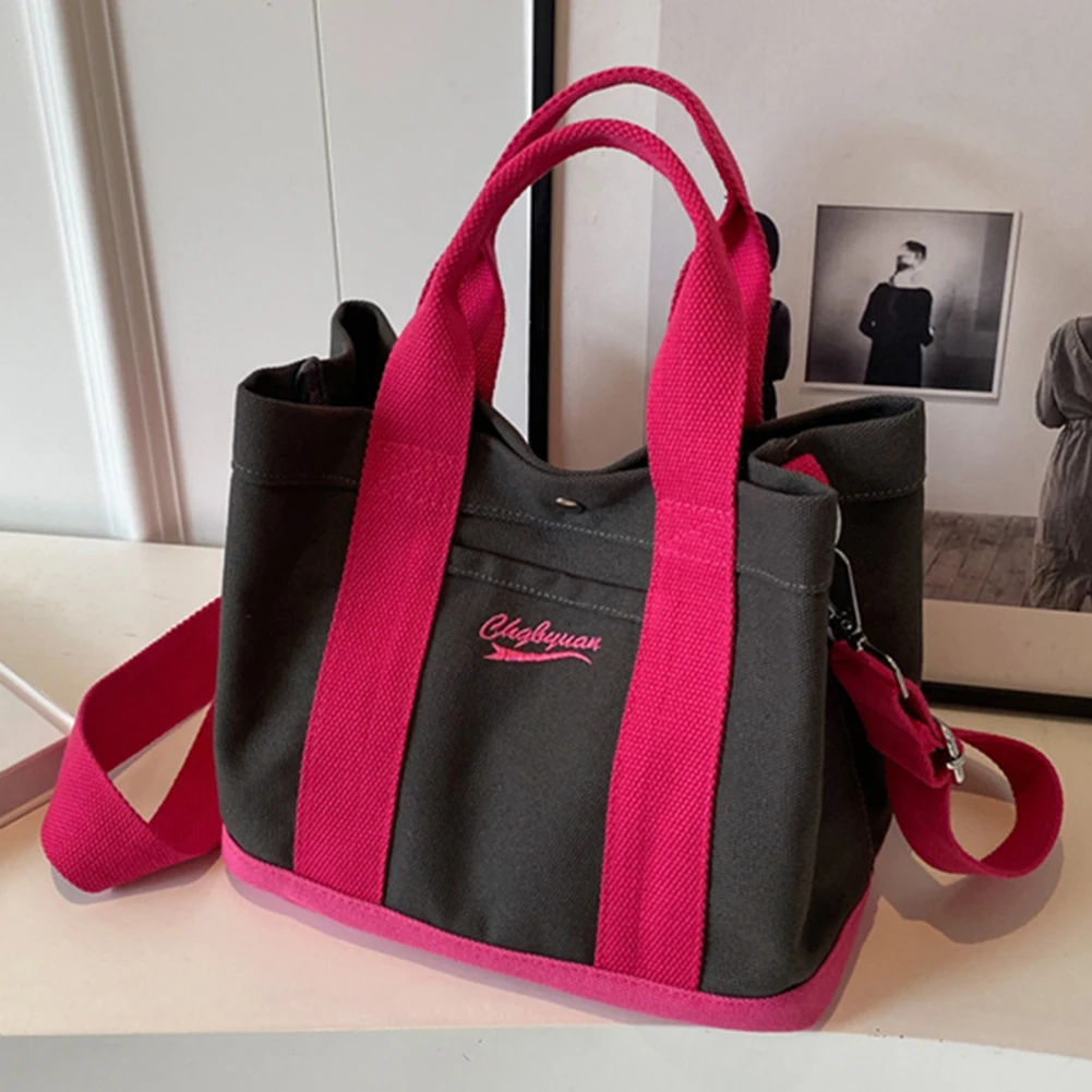 Women Fashion Shoulder Bag Large Capacity Canvas Patchwork Tote Handbag Wide Adjustable Strap Chic Messenger Bag Daily Sling Bag