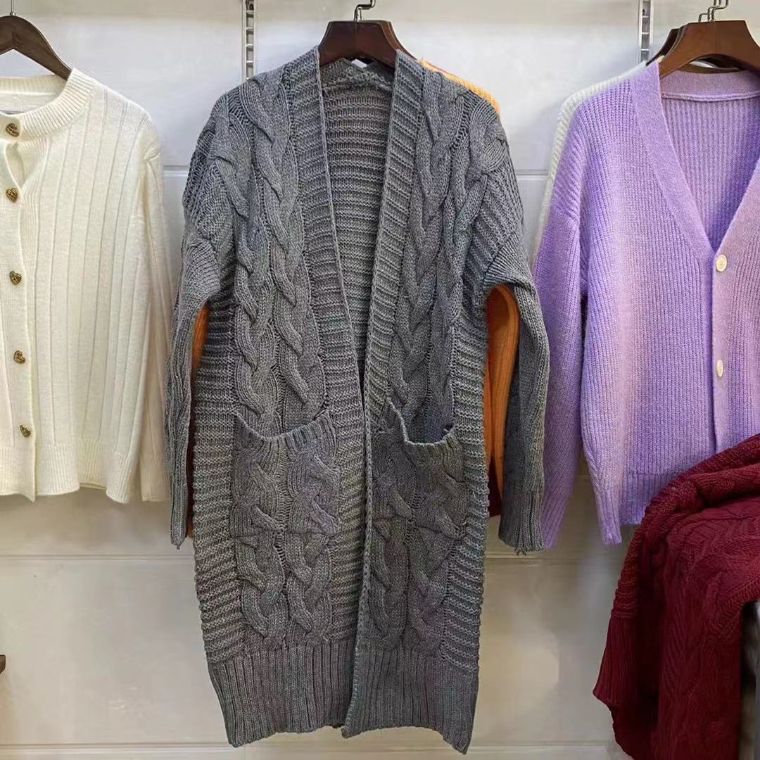 Women's Clothing plus size women's autumn and winter new cable knitted sweater cardigan mid length coat