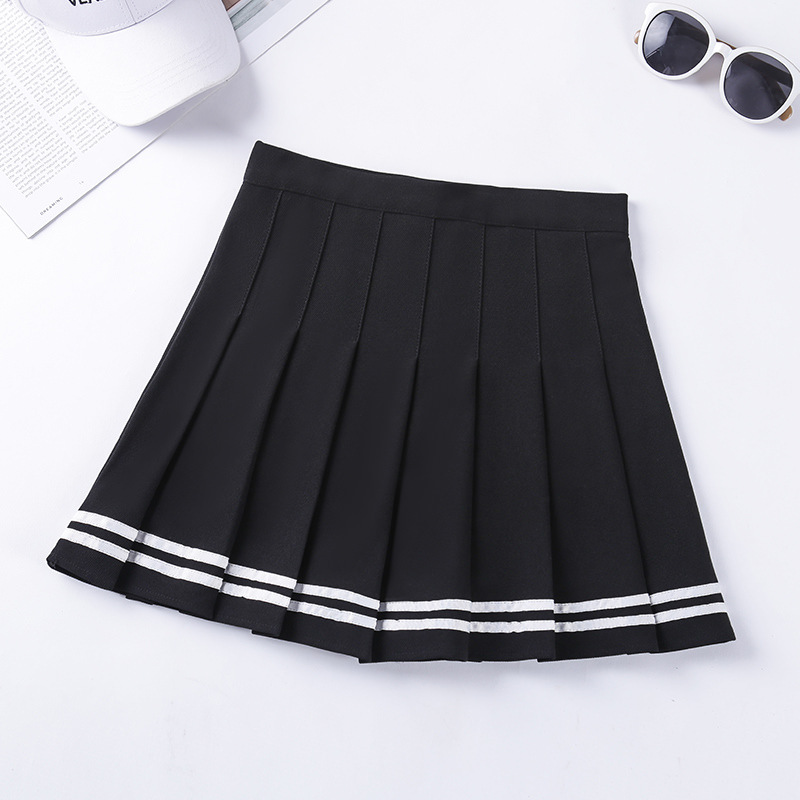 Women's Clothing Waist Pleated Skirt Student Striped Skirt With Safety Pants College Style