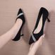 Women's High heels women's new spring and autumn rhinestone French shallow mouth suede pointed toe stiletto single shoes black with dress