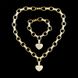 Make a statement with this stunning gold heart-shaped jewelry set, featuring a necklace and bracelet adorned with sparkling AAA zircon stones. Perfect for adding a touch of elegance to any outfit, this set is designed to make you shine on every occasion.