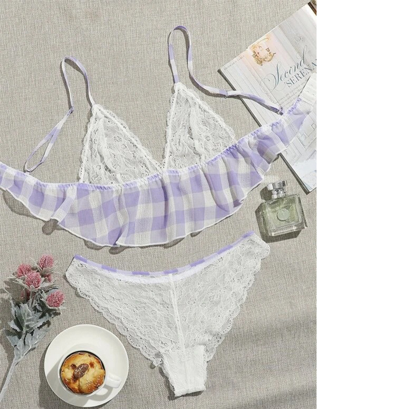 Women's Lace Fun Set Flat Chest Display Large Not Empty Cup No Steel Rim Bra Perspective Underwear