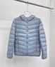 This lightweight hooded down jacket features 86%-90% premium white duck down and a sporty short design, perfect for seamless layering without bulk. The soft nylon shell and adjustable hood ensure comfort and style.