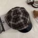 2025 Fall/Winter New Women's Red Plaid Wool Octagonal Hat Leather Beret
