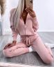 Women's solid color zipper woolen coat+trousers