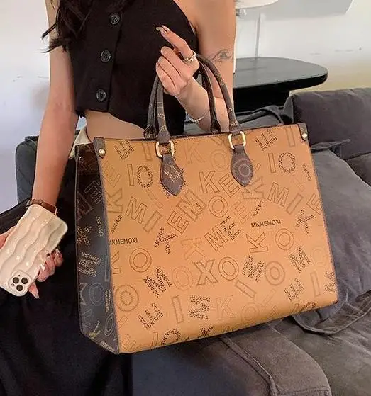 Big Women Lette PVC Leathe Band Puses And Handbag Designe Reto Lage Capacity Monogam Lady Top-handle Tote