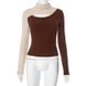 Y24TP641 Style Women's Autumn And Winter Contrasting Half High Neck Hollowed Out Western-style Waist Cinching Bottom Top